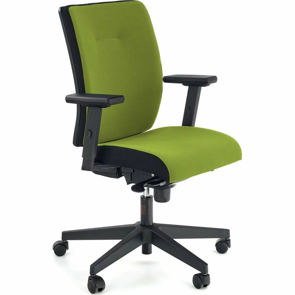 Työtuoli synkronisella mekanismilla, säädettävällä istuimella ja säädettävällä käsinojalla.