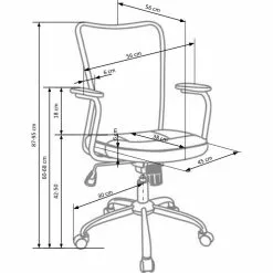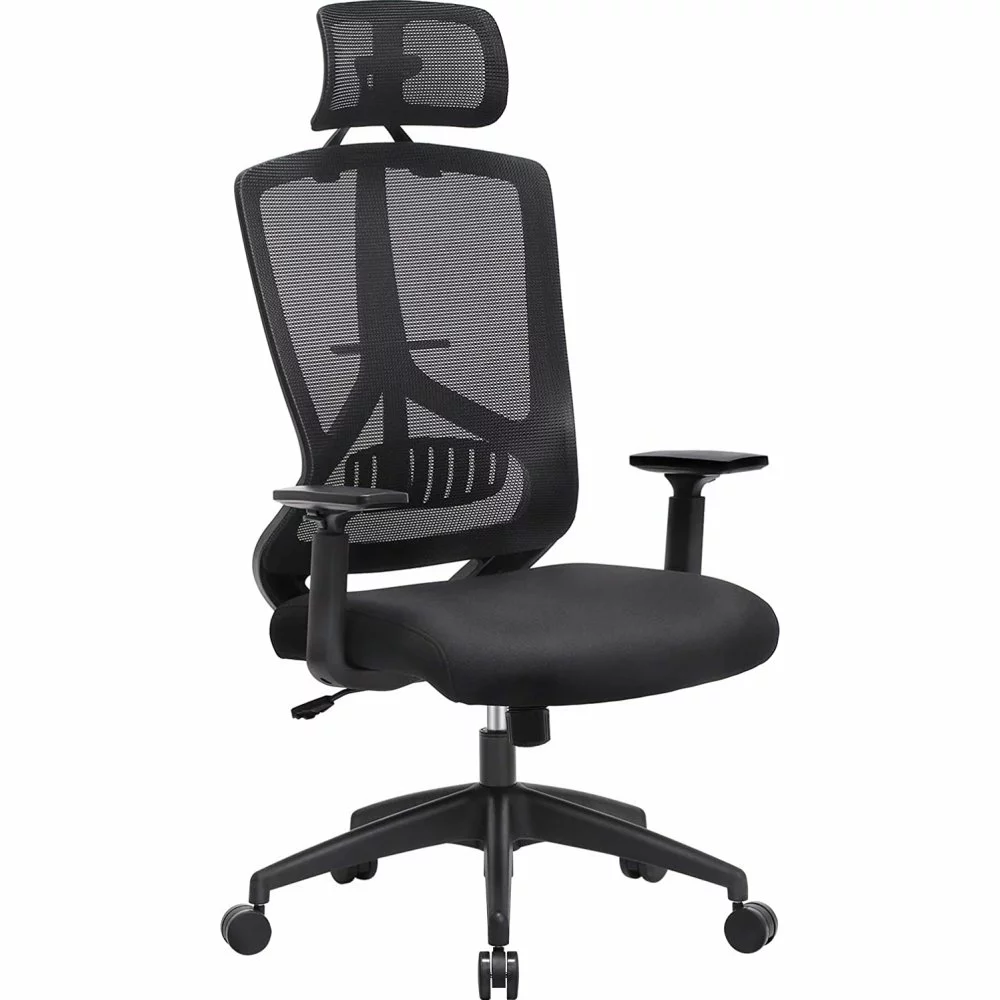 Työtuoli kallistusmekanismilla. Erilliset asetukset istuimen korkeudelle, selkänojalle, niskatuelle ja käsinojalle. Hengittävä verkkokangas selässä ja pääntuessa.