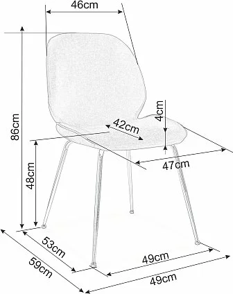 Metallinen ruokapöydän tuoli. Päällystetty polyesterillä jäljitelmässä samettia.