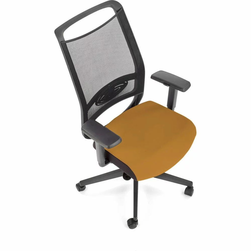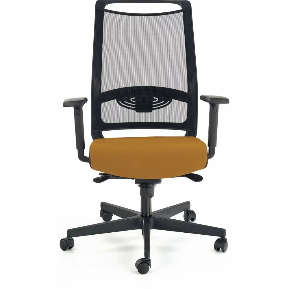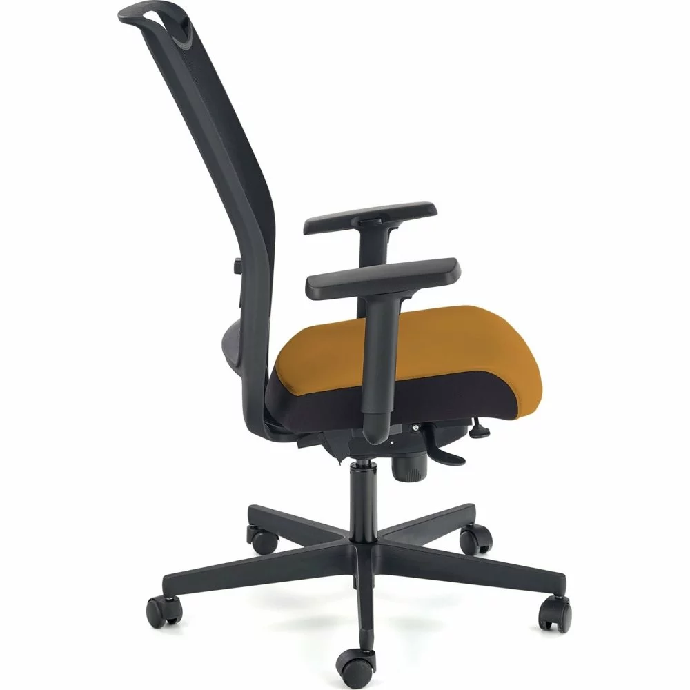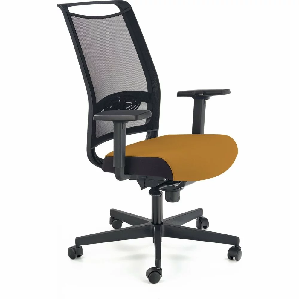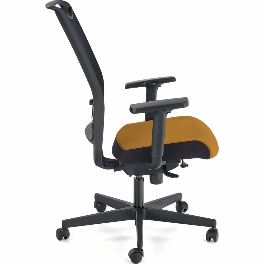 Työtuoli synkronisella mekanismilla, säädettävällä istuimella, säädettävällä käsinojalla ja säädettävällä ristiseläntuella.