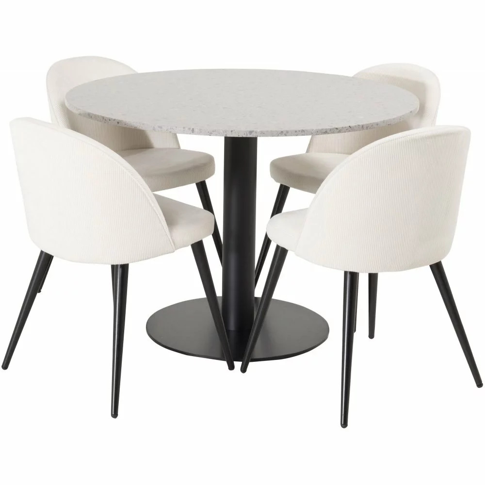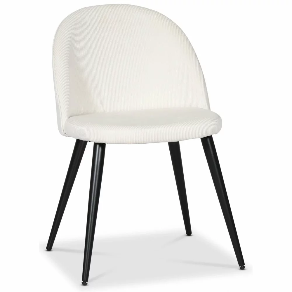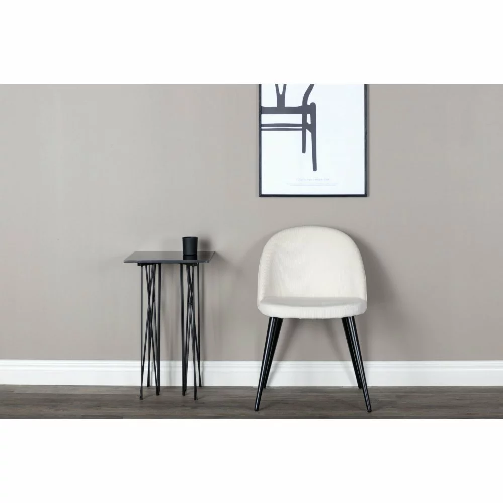 Alice ruokapöydän tuoli mukavalla istuimella ja moderni muotoilu beige ylellisellä vakosamettikankaalla. Mustaksi lakatut teräsjalat.