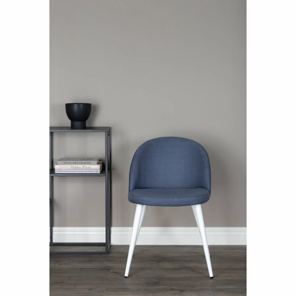 Ruokapöydän tuoli valmistettu metallista ja puusta, päällystetty polyesterikankaalla.