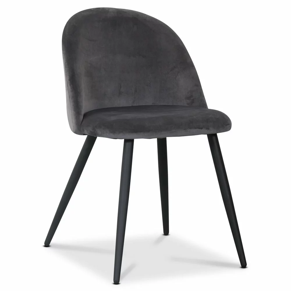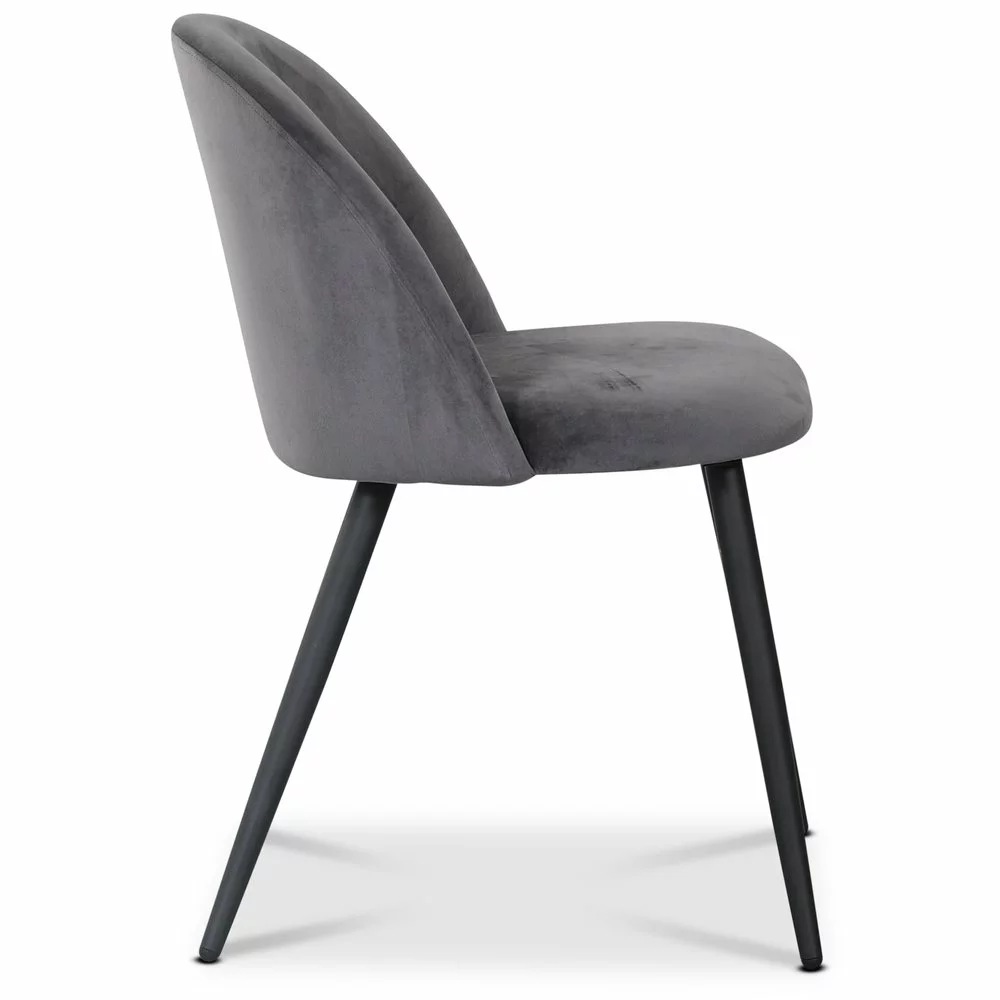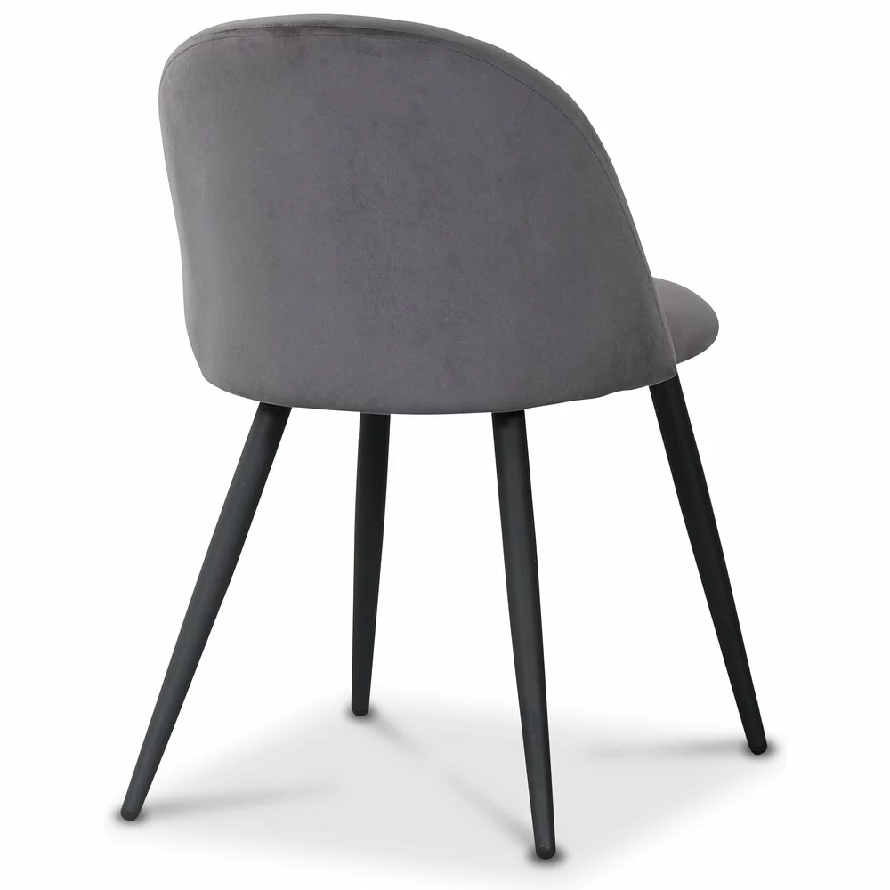 Alice-ruokatuoli on verhoiltu ylellisellä harmaalla samettikankaalla ja varustettu yhteensopivilla mustilla metallijaloilla.