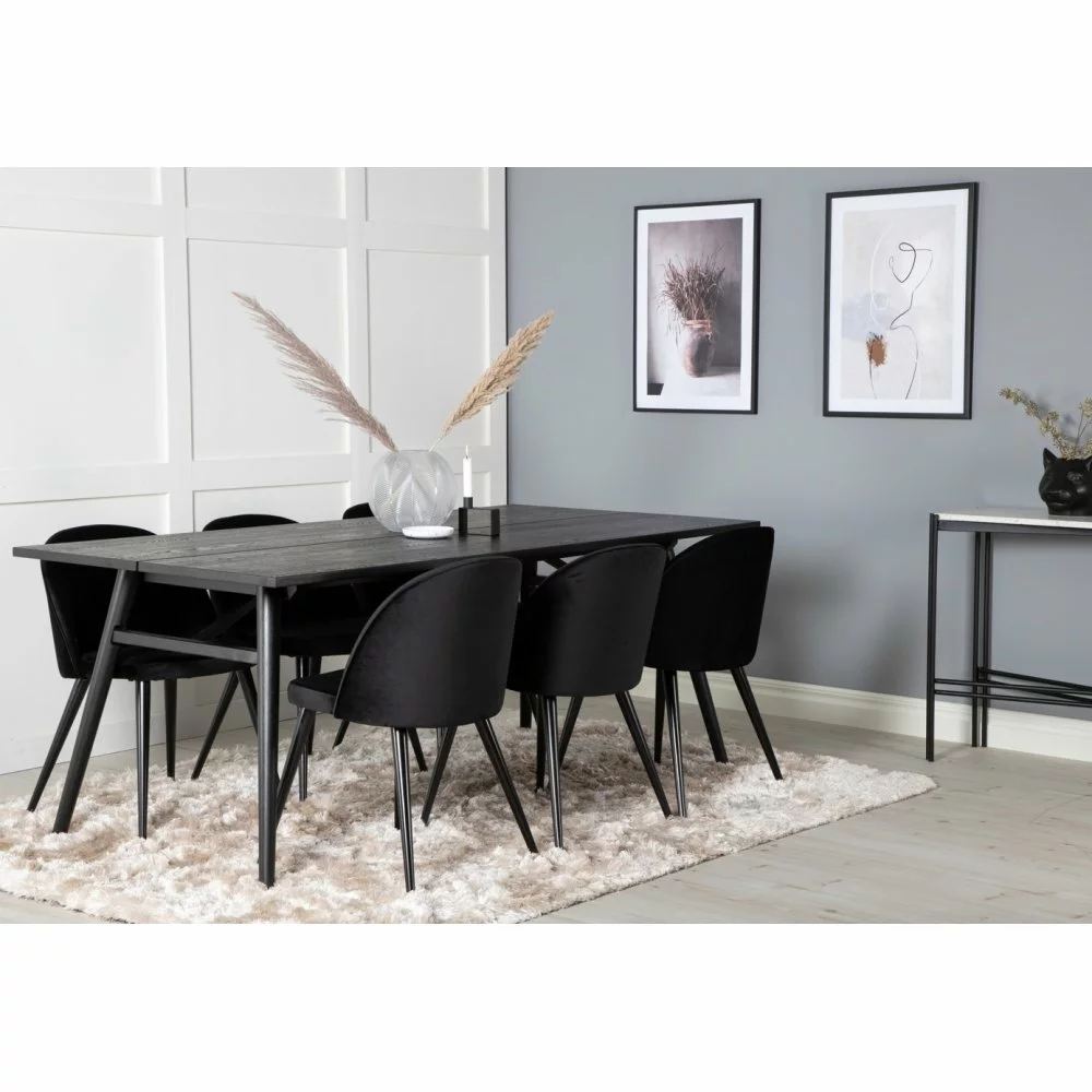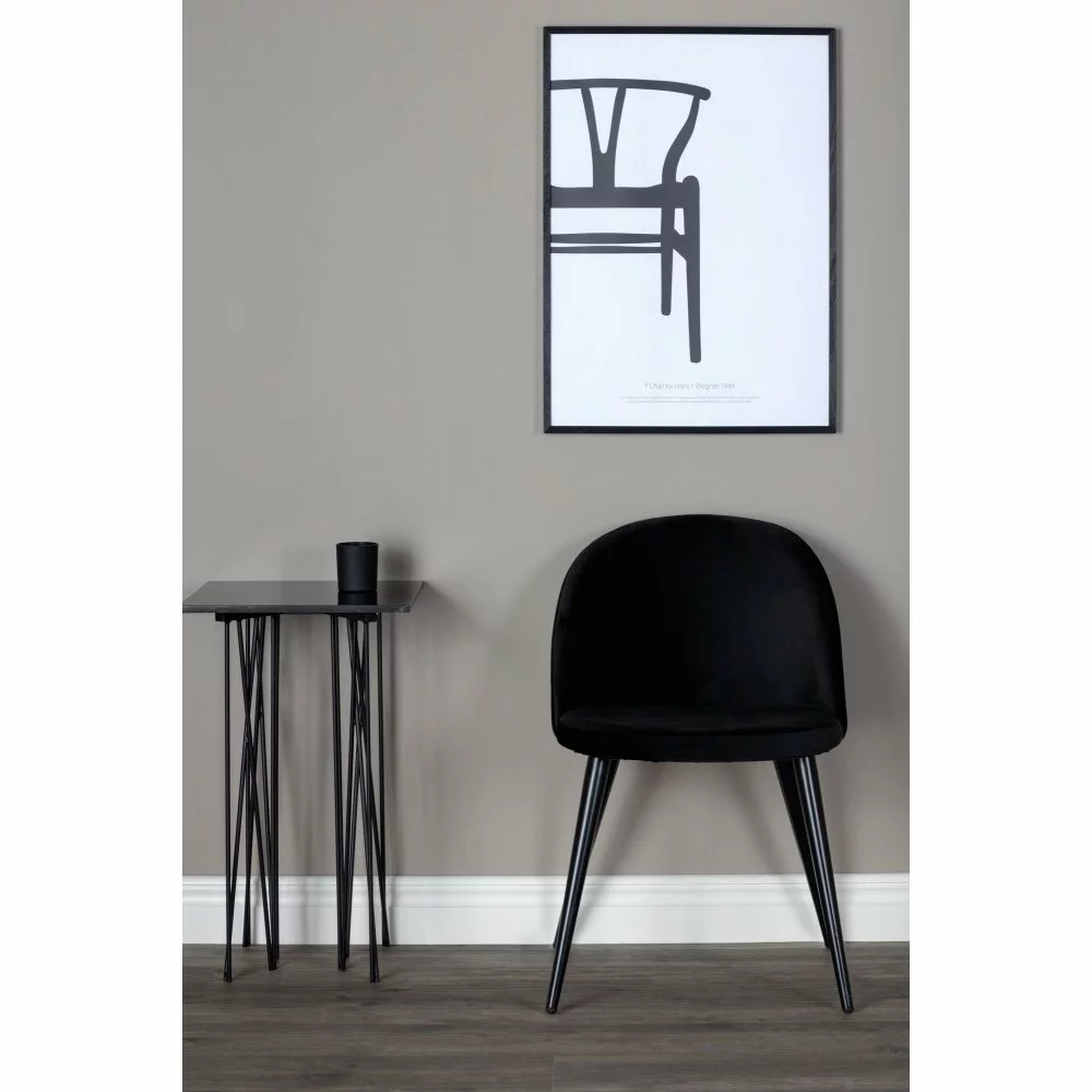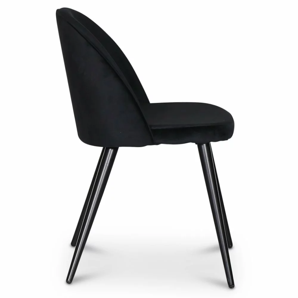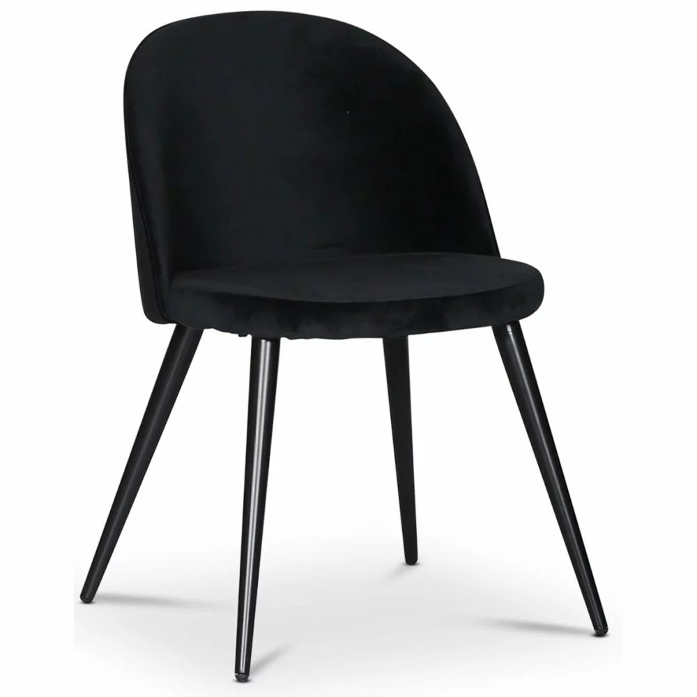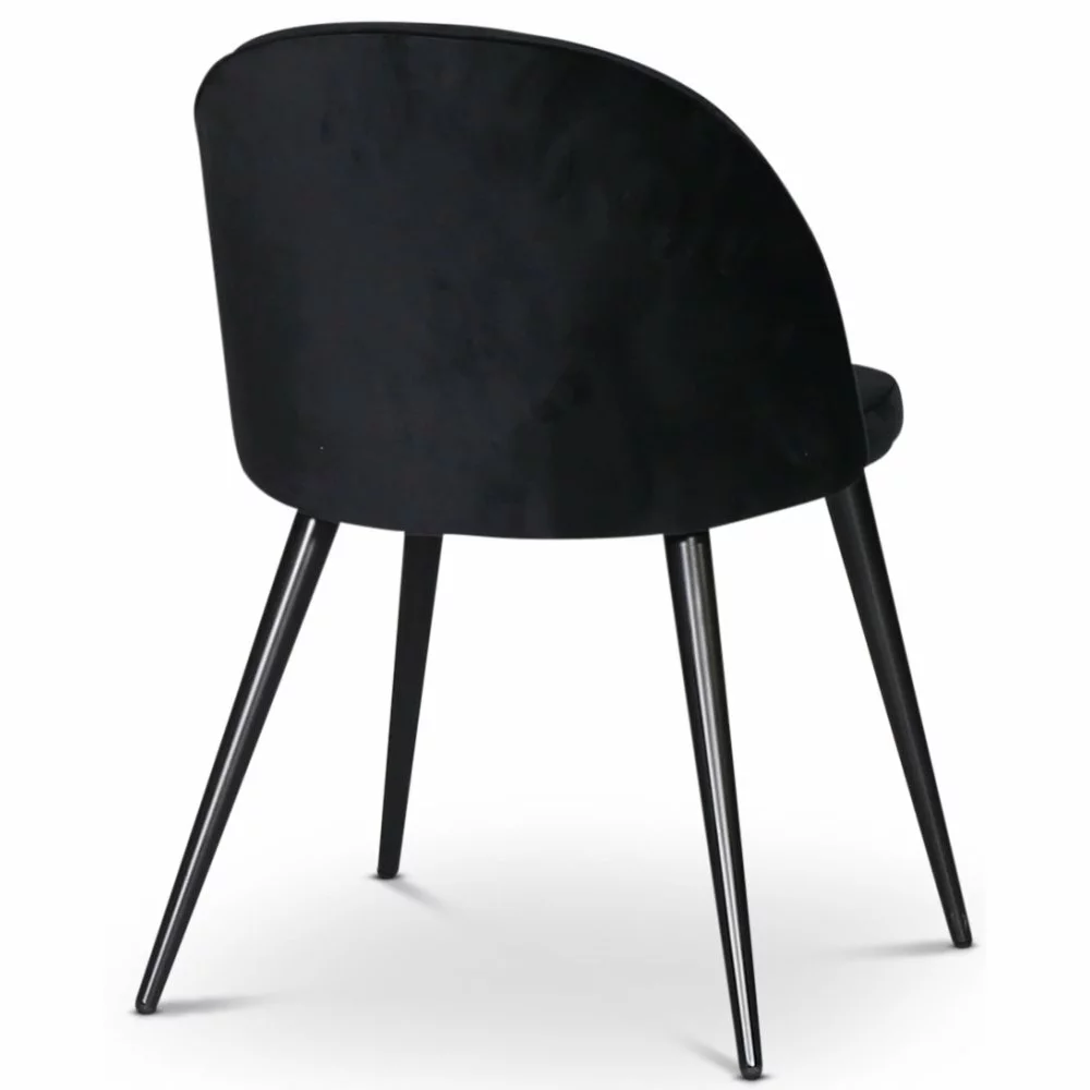 Alice ruokapöydän tuoli päällystetty ylellisellä mustalla samettikankaalla ja siihen sopivat mustat metallijalat. Tuolissa on pehmeä käyttömukavuus ja se sopii sekä moderneihin ruokapöytiin että klassisiin ruokapöytiin.