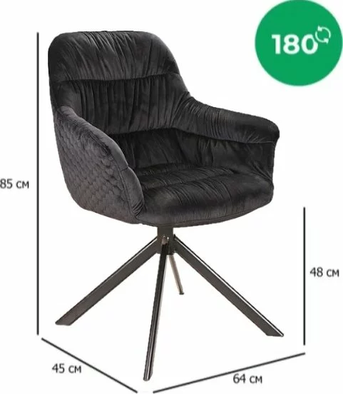 Metallista valmistettu kääntötuoli polyesteriverhoilulla.