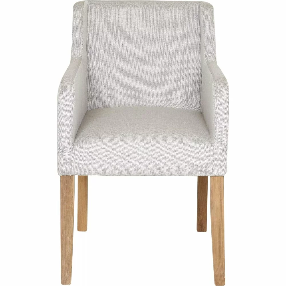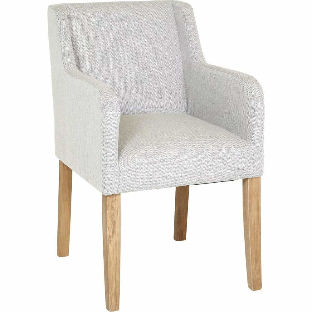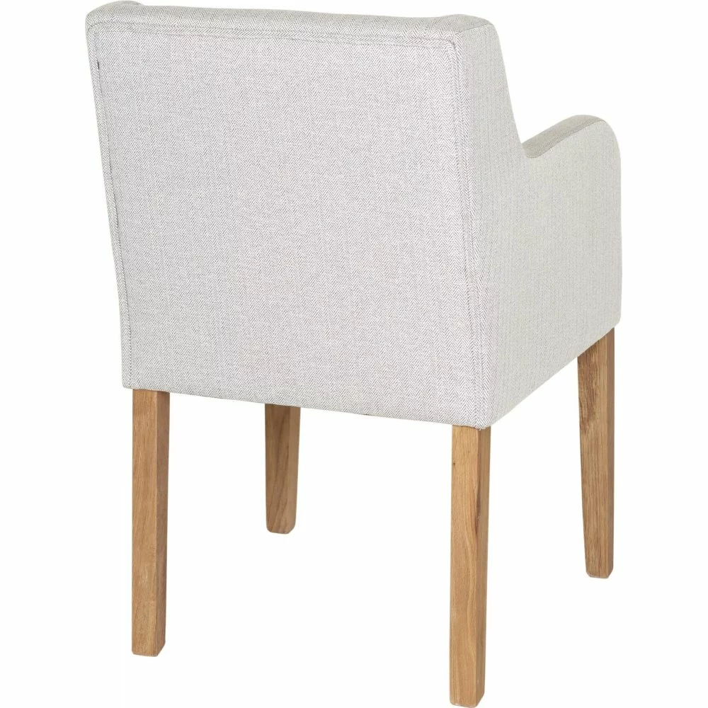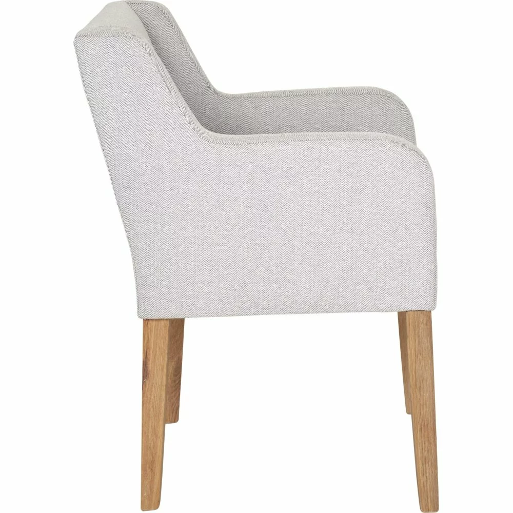 Tammivanerista ja puusta valmistettu nojatuoli. Verhoilu tekstiiliä.