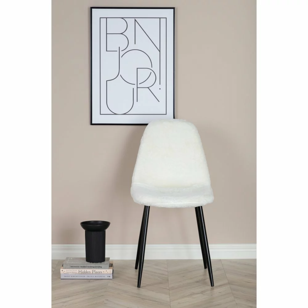 Ruokailutuoli metallista ja vanerista, päällystetty polyesterikankaalla.