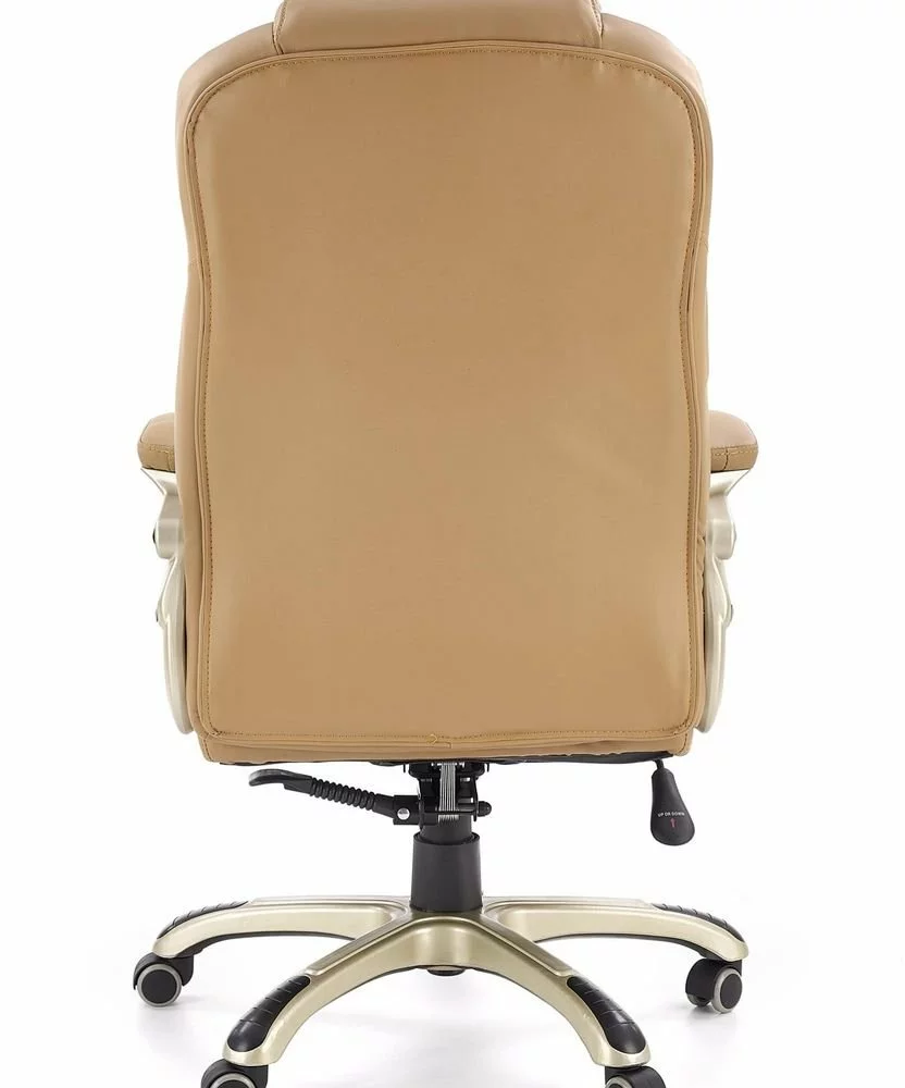 Tyylikäs ja tukeva toimistotuoli. Todella miellyttävä beige keinonahkaverhoilu lopullisen mukavuuden takaamiseksi. Istuimen korkeutta voi säätää ja tuolia on helppo siirtää jalkaristikon alla olevien pyörien ansiosta.