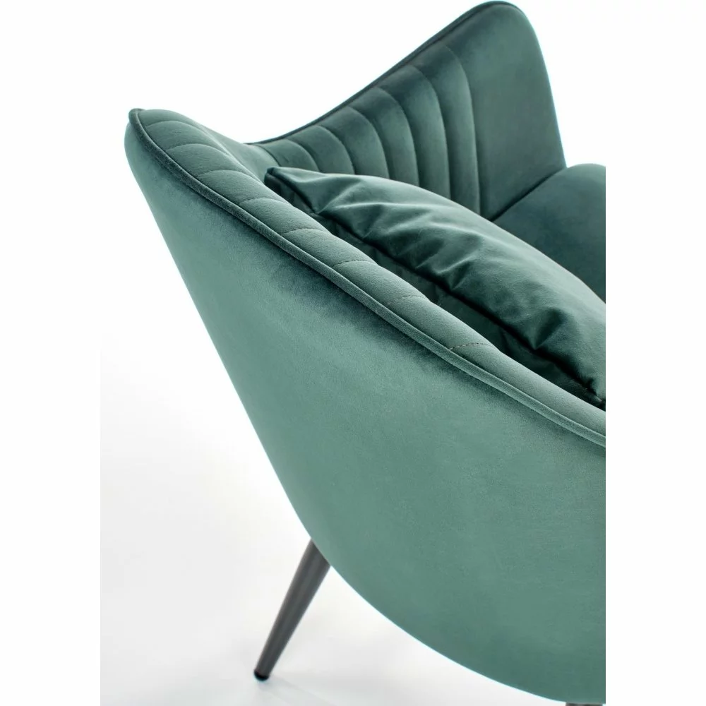 Teräksestä valmistettu nojatuoli, verhoilu samettia.