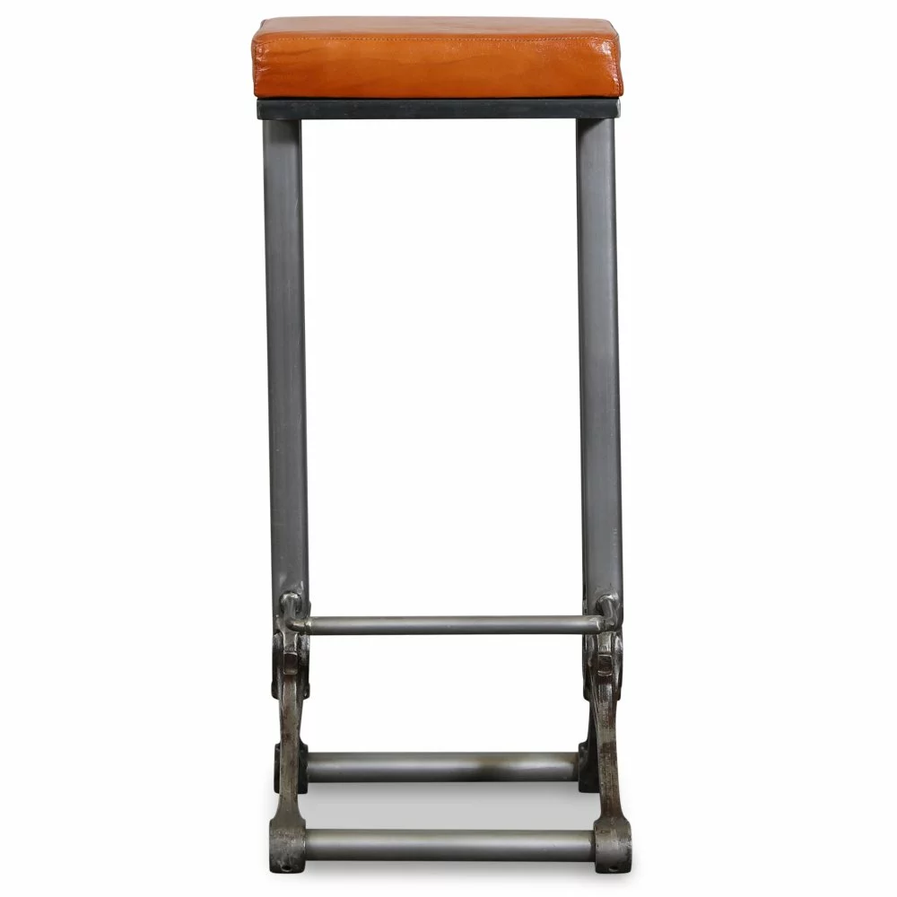 Calil-baarijakkara vintage-designilla antiikkipatinalla. Ruskea nahkainen istuin.