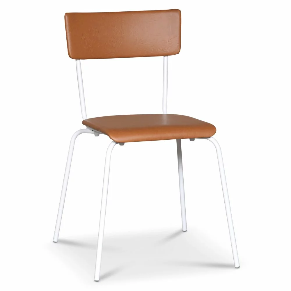 Cliff ruokatuoli moderni huonekaluklassikko, joka ei koskaan katoa ajastaan. Valkoiseksi lakatut metallijalat, ruskea PU istuimessa ja selkänojassa. Messinkiset yksityiskohdat ja pinottava tuoli.