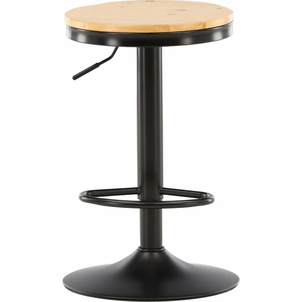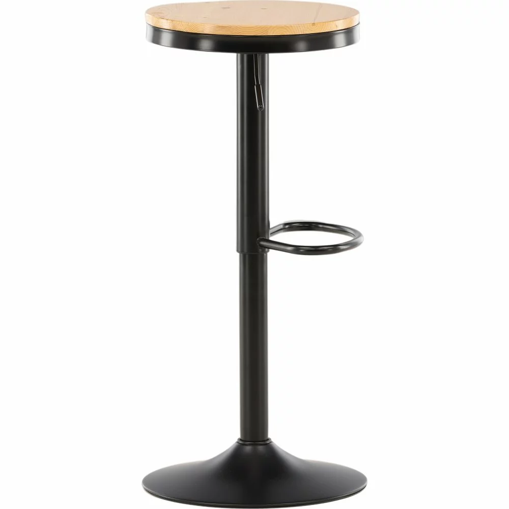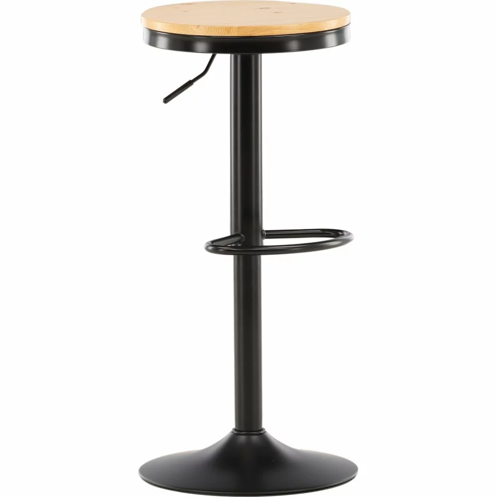 Tyylikäs baarijakkara, jossa trumpettijalka mustaa terästä ja yksinkertainen pyöreä istuin tammenväristä MDF-levyä. Tässä baarituolissa on integroitu jalkatuki, ja sitä voidaan nostaa ja laskea lisää mukavuutta. Aseta keittiön baarin viereen toivottamaan ylimääräistä seuraa tai korkeamman ruokapöydän ympärille. Tämä baarijakkara jatkaa yhteisiä hetkiä kodin sydämessä.