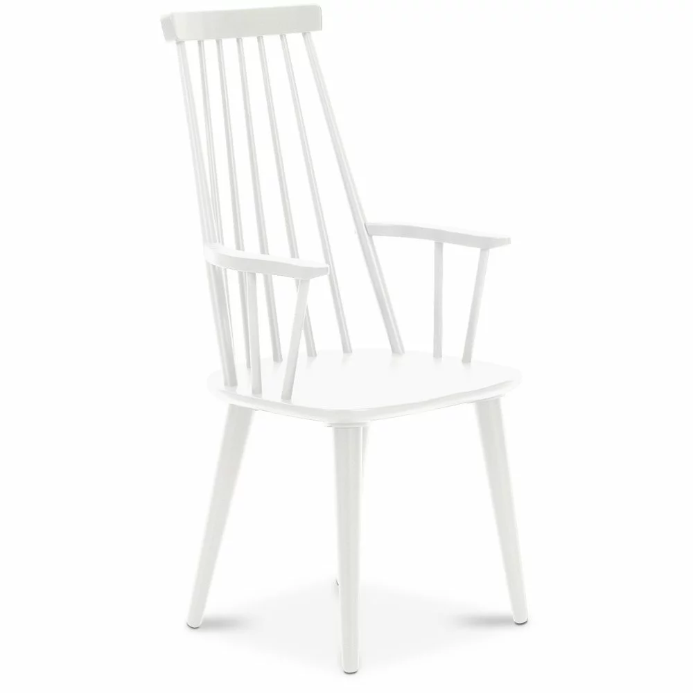 Puutuoli on valmistettu massiivihevea-puusta, joka on kestävää ja laadukasta, ja pinta on tehdasmaalattu kauniin valkoisena.