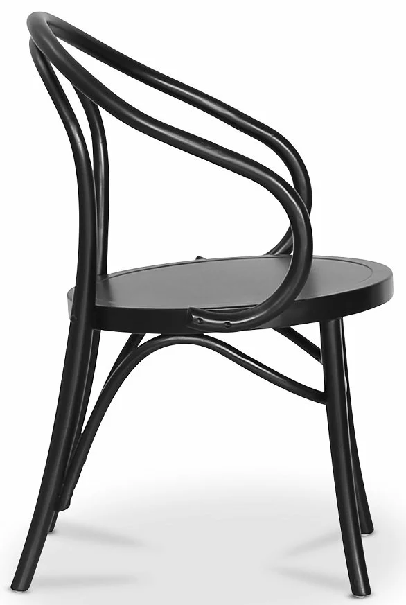 Tyylikäs tuoli, musta harjattu ulkonäkö, taivutettu puu, puinen istuin. Runko on mustaksi harjattua massiivijalavaa, jossa puuta taivutettiin tekniikalla. Tämä antaa tuolille sen kauniit luonnolliset muodot. Voit vapaasti yhdistää johonkin ruokapöytäämme.