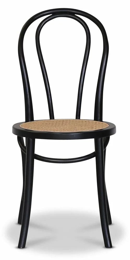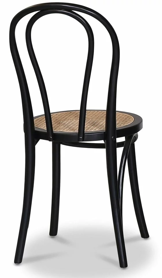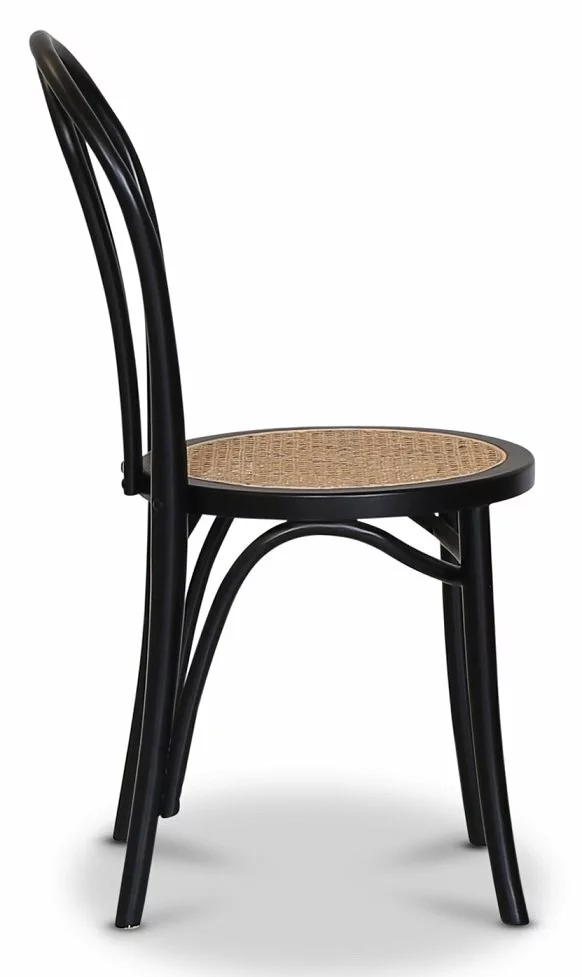 Tyylikäs tuoli, musta harjattu ulkonäkö, taivutettu puu, istuin päällystetty rottinkilla. Runko on mustaksi harjattua massiivijalavaa, jossa puuta taivutettiin tekniikalla. Tämä antaa tuolille sen kauniit luonnolliset muodot. Voit vapaasti yhdistää johonkin ruokapöytäämme.