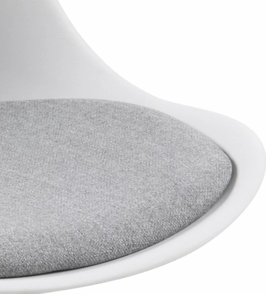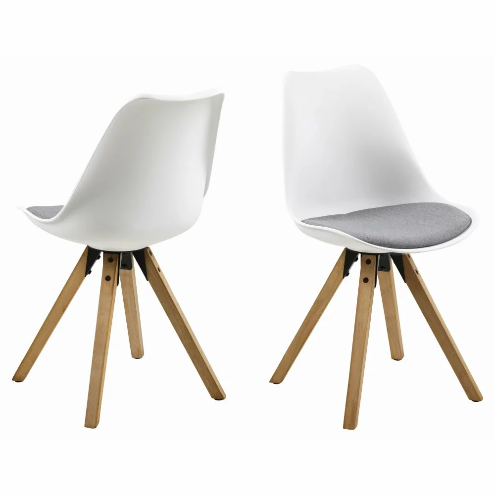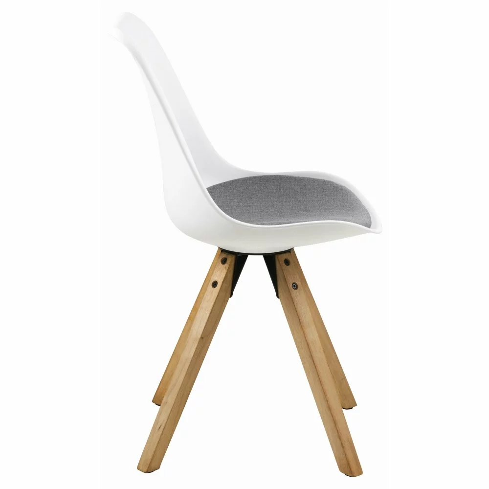 Polypropeenista valmistettu ruokatuoli, jossa on lakatut kumipuujalat. Polyesteri istuin.