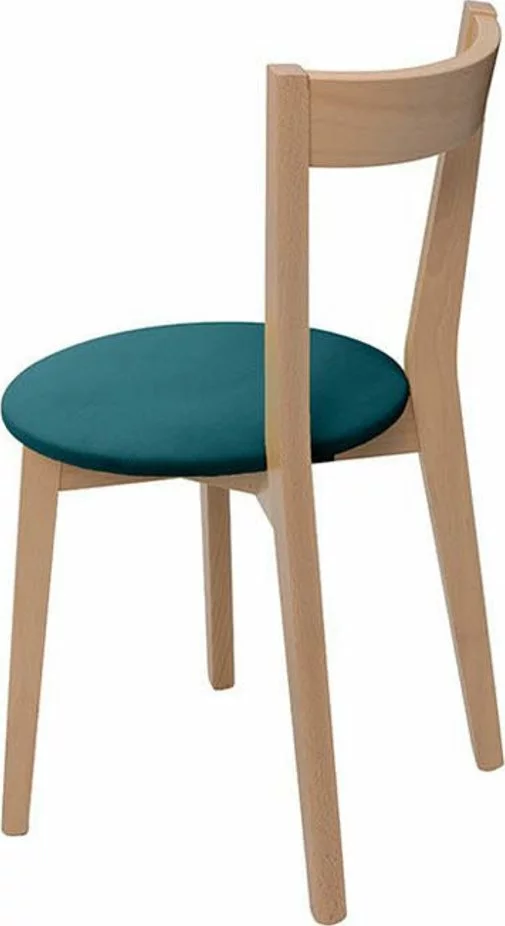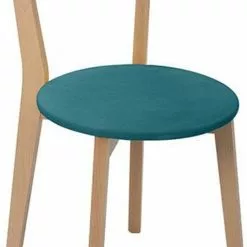 Puinen ruokapöydän tuoli kangasverhoilulla.