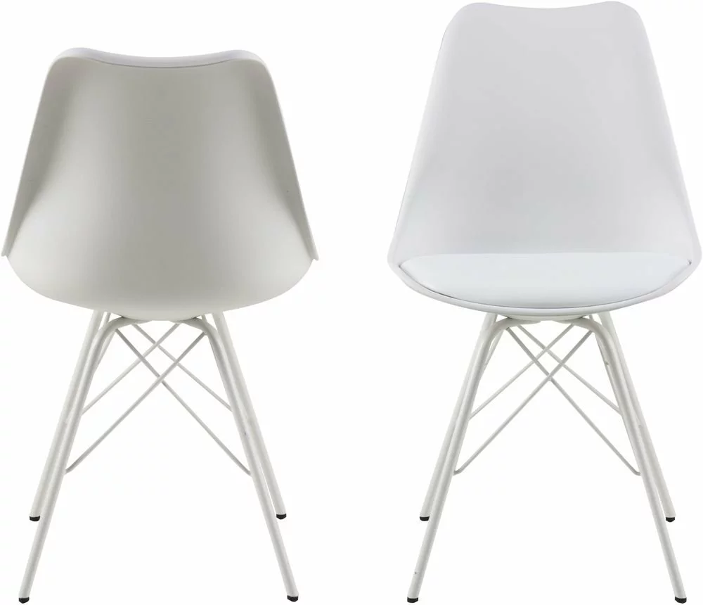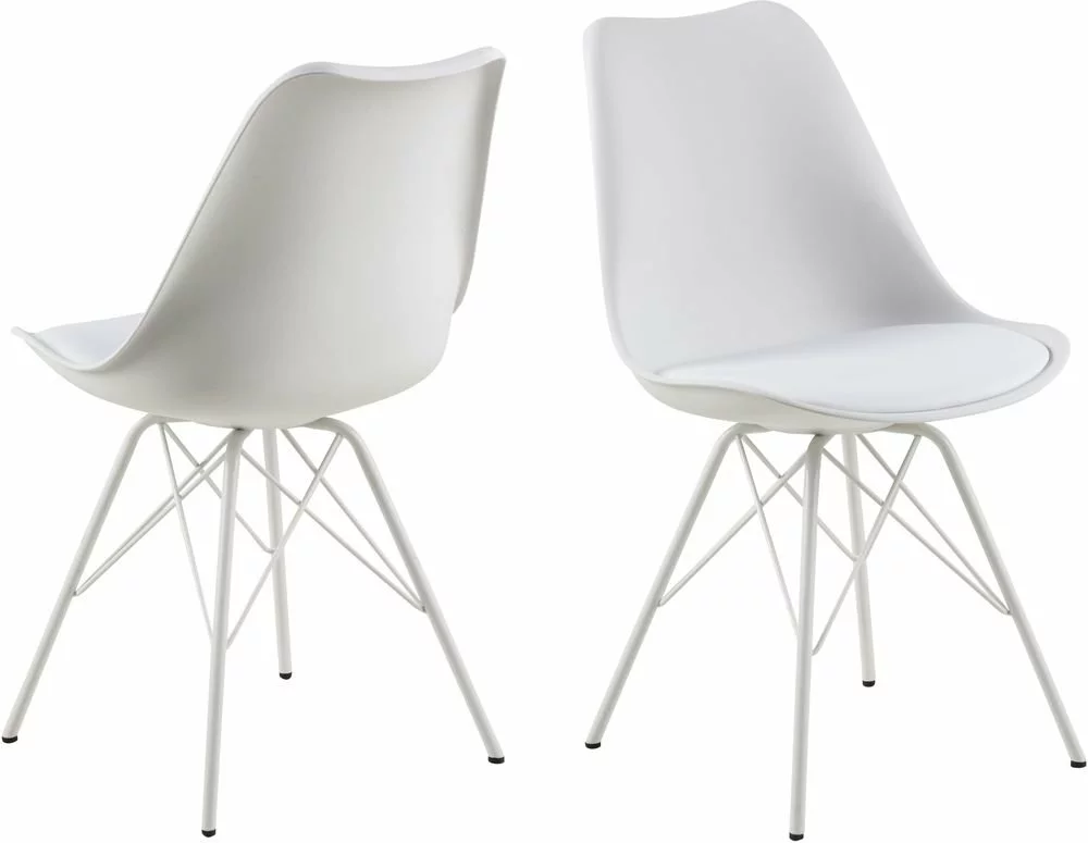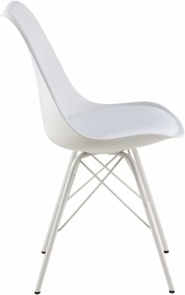 Ruokatuolin runko on valmistettu valkoiseksi jauhemaalatusta metallista, istuin on valkoista muovia ja istuintyyny on verhoiltu erittäin miellyttävällä valkoisella keinonahalla.