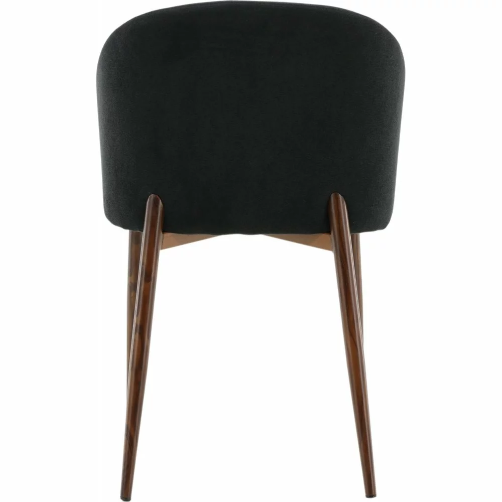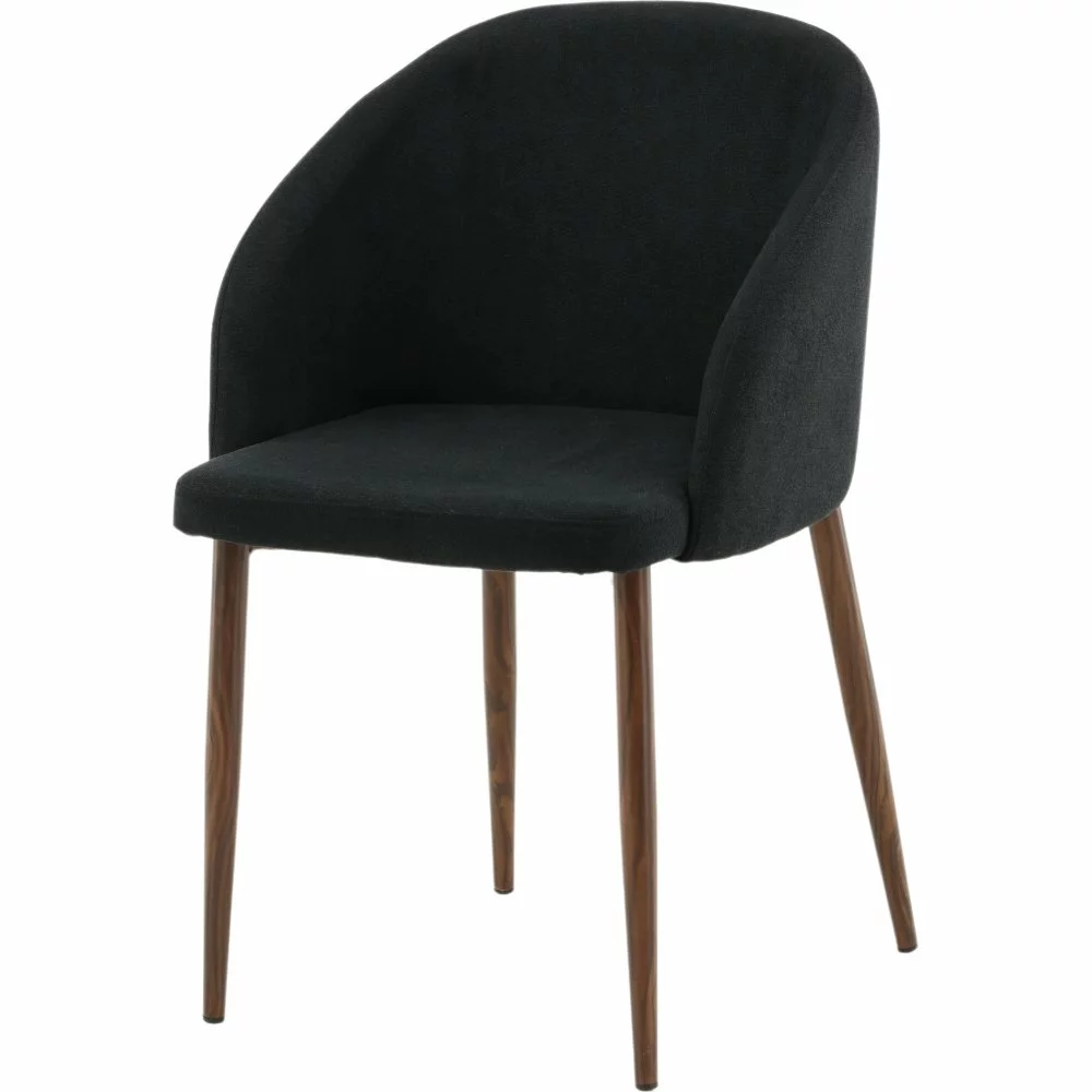 Ruokapöydän tuoli valmistettu metallista ja puusta, päällystetty polyesterikankaalla.