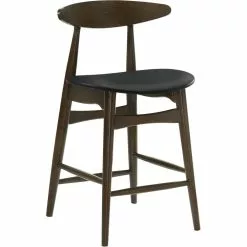 Moderni Floora baarijakkara pähkinäjalustalla ja istuin mustaa PU:ta. Kaareva selkänoja hyvän mukavuuden takaamiseksi. Saatavana myös valkoisena.