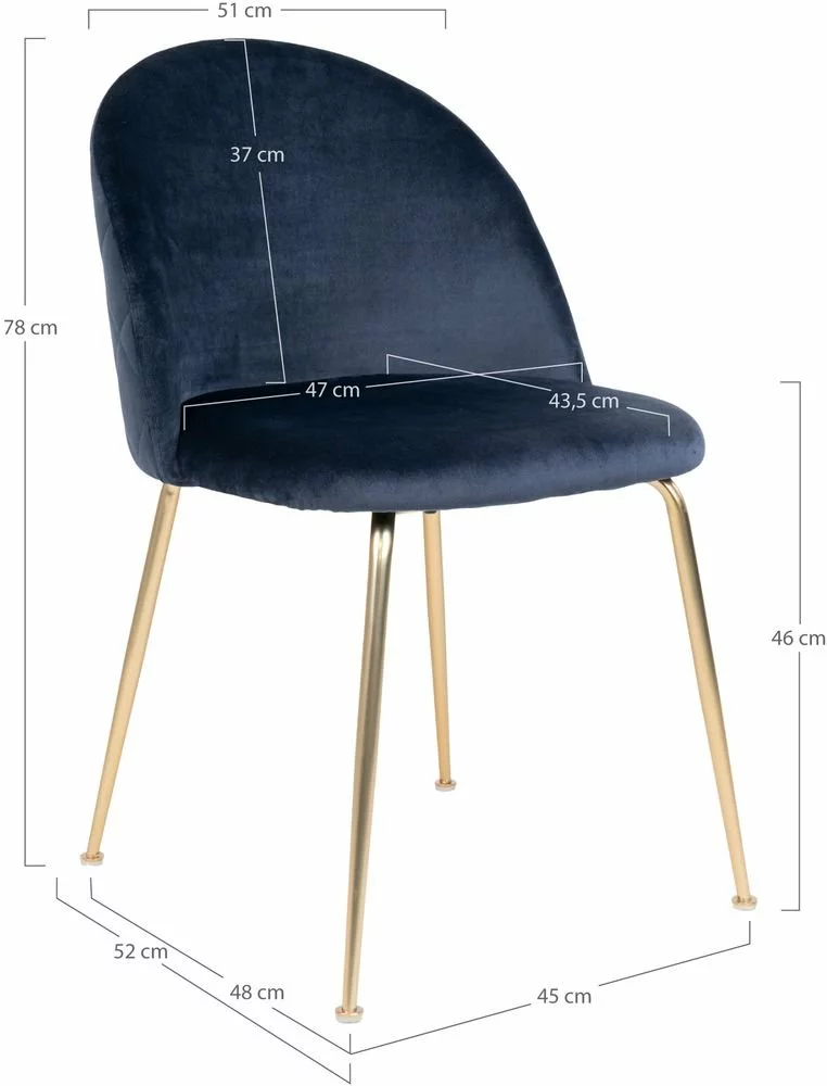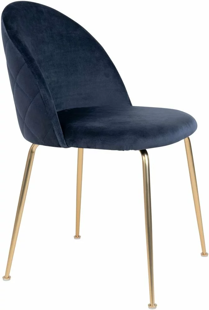 Tuoli sinistä veluuria ja jalat messinkiä.