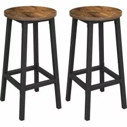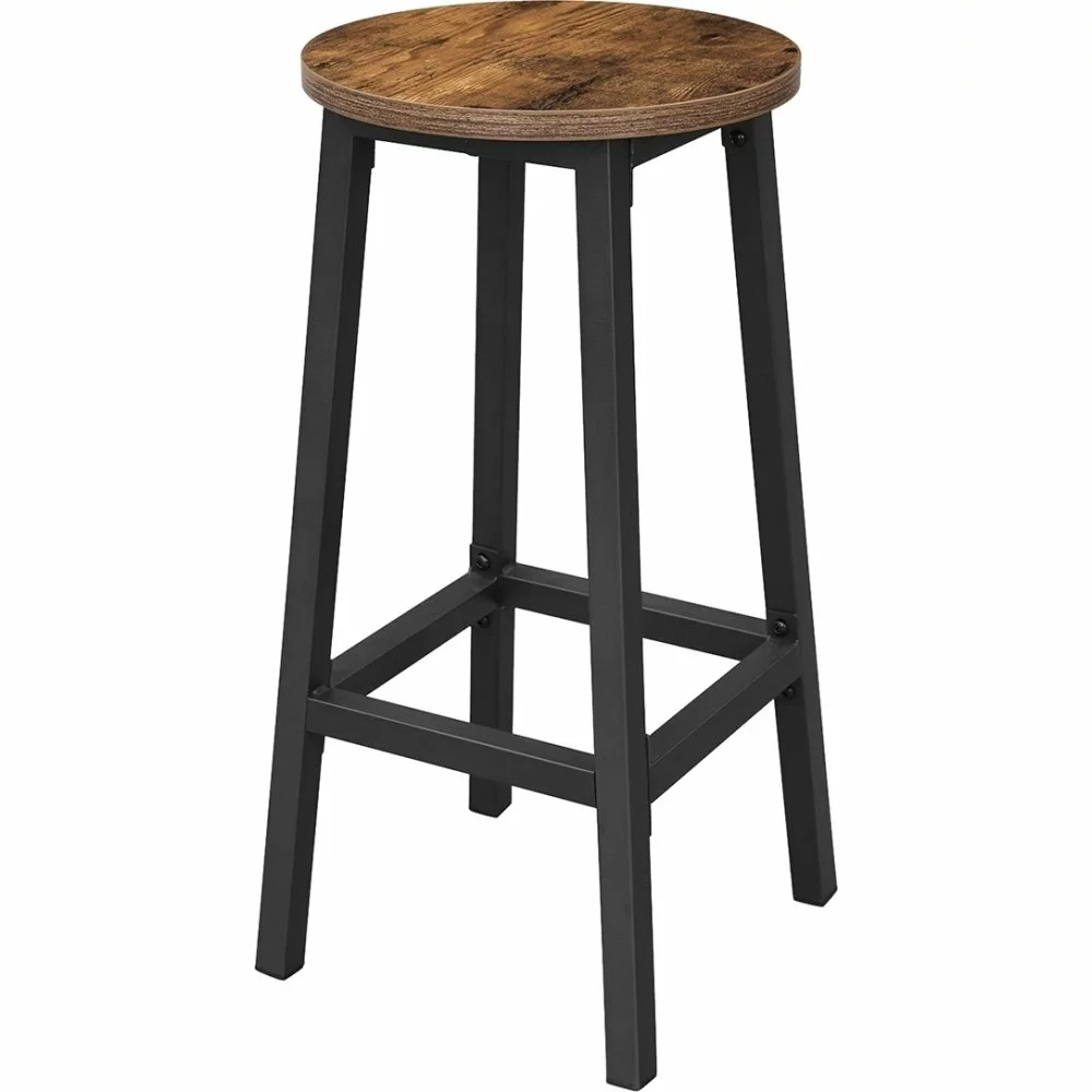 2 maalaismaista baarituolia, joissa mustat teräsjalat ja puinen istuin.