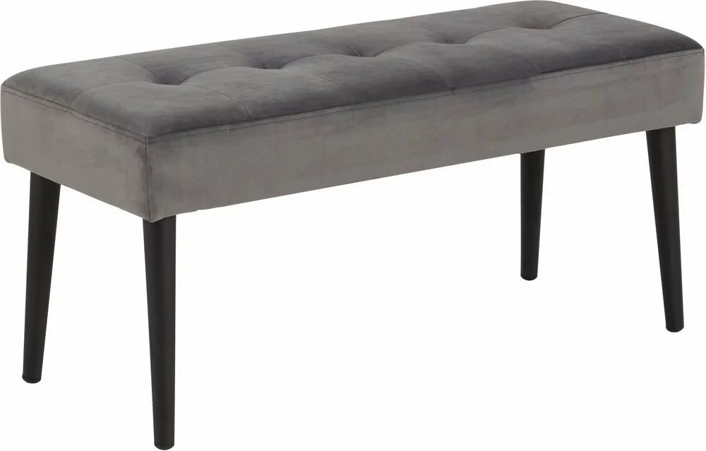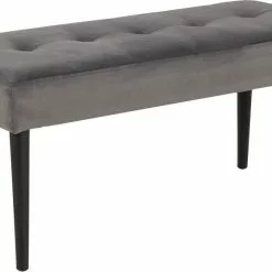 Mukavalla samettikankaalla verhoiltu penkki, jonka runko on valmistettu jauhelakatusta metallista.