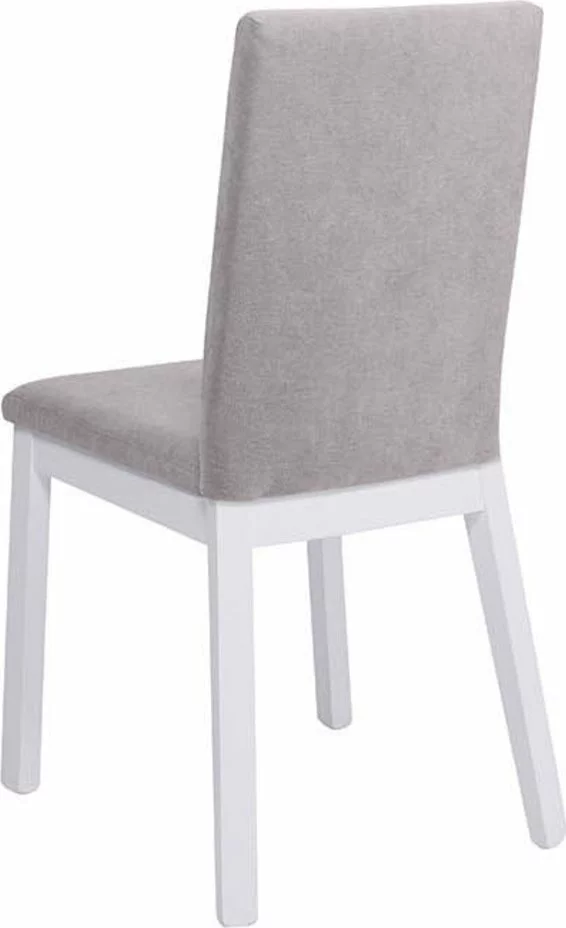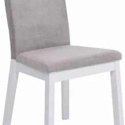 Puinen ruokapöydän tuoli kangasverhoilulla.