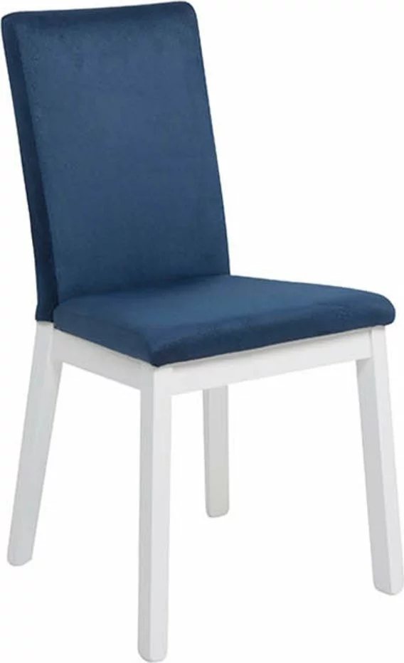 Puinen ruokapöydän tuoli kangasverhoilulla.