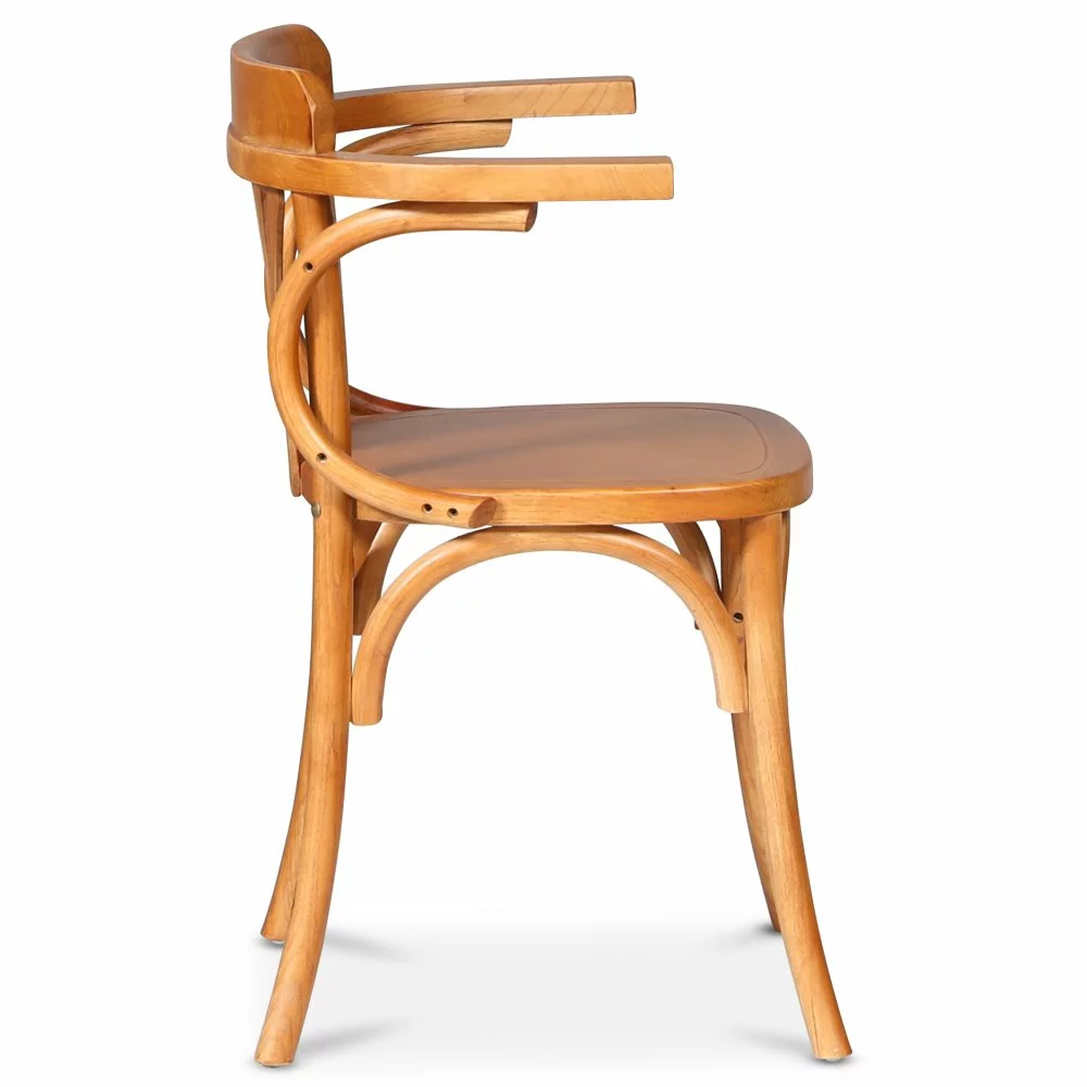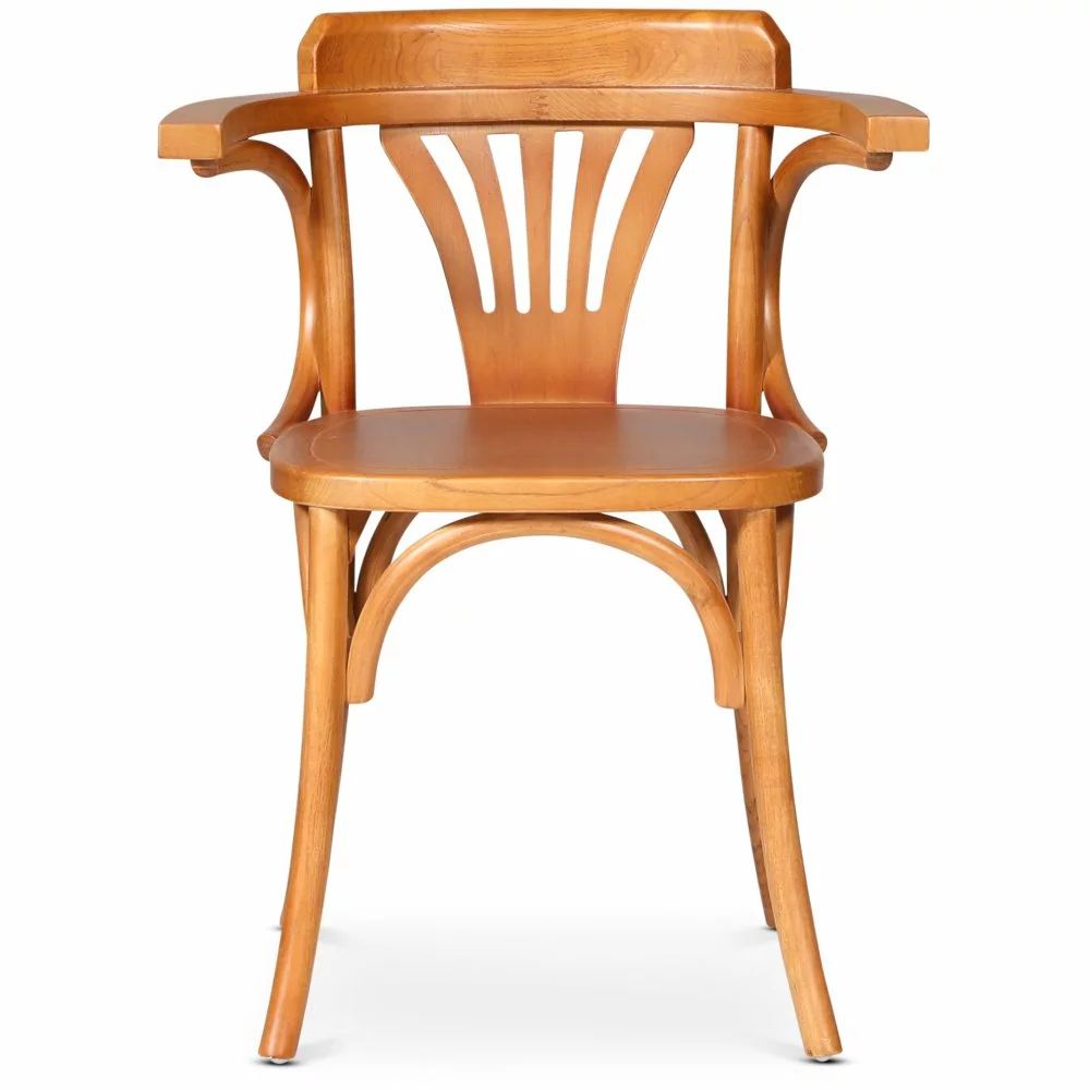 Nojatuoli ylellisillä yksityiskohdilla ja tukevalla rakenteella. Runko massiivijalavaa, istuin vaneria. Koottu ja tukeva klassinen ravintolatuoli.