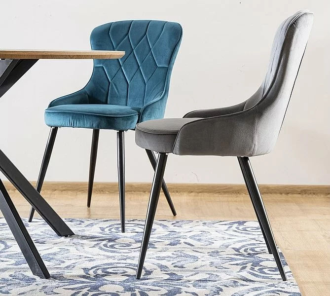 Metallinen ruokapöydän tuoli. Päällystetty polyesterikankaalla.