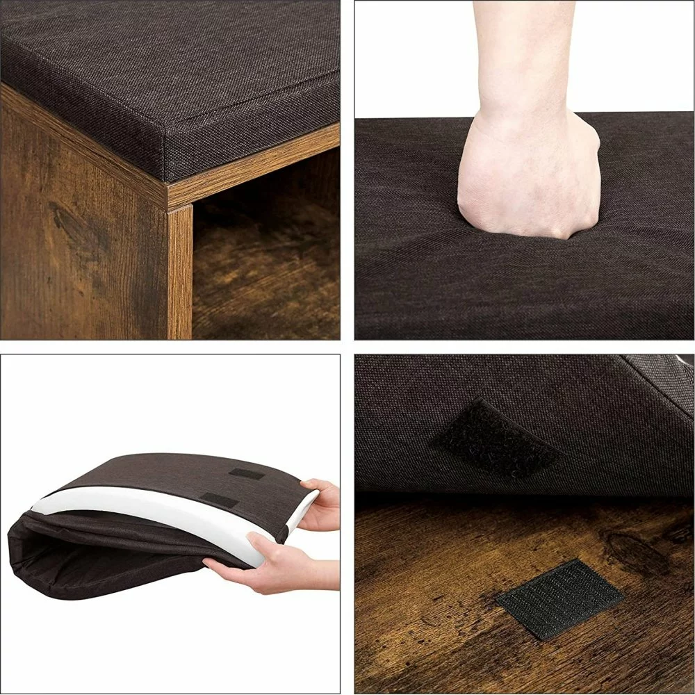 Puinen eteisen penkki säilytyslokerolla. Mahtuu 10 paria kenkiä kokoon 44 asti, ja sen sivulokeroon säädettävillä jakajilla mahtuu jopa korkokengät tai saappaat. Kestää maksimipainon 150 kg.