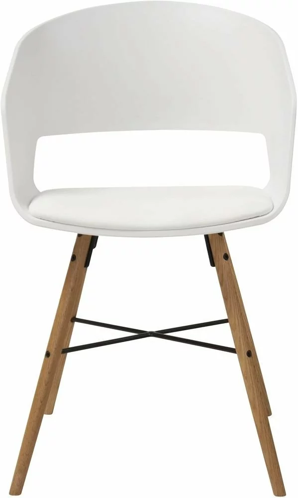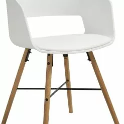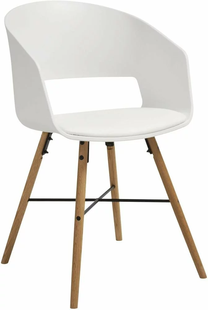 Polypropyleenimuovista valmistettu tuoli PU-istuimella ja jalat valkopigmentoidusta ja vahalakatusta poppelista/lehmuksesta. Toimitetaan osissa.