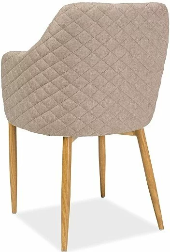Tyylikäs nojatuoli. Runko on valmistettu metallista upealla tammitoteutuksella ja istuin on verhoiltu todella miellyttävällä kankaalla lopullisen mukavuuden takaamiseksi.