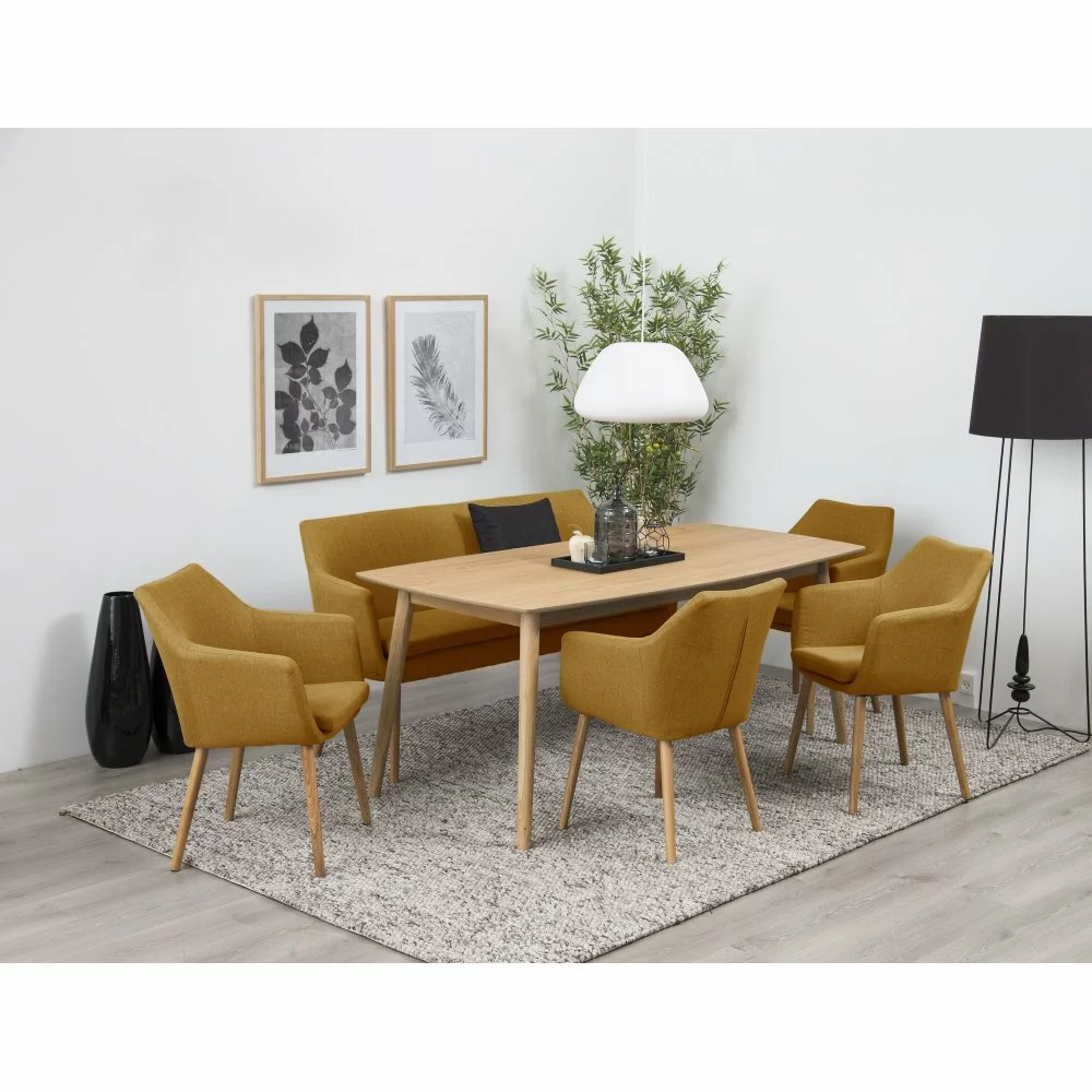 Nojatuoli. Öljytyt tammijalat. Verhoilu polyesteriä.