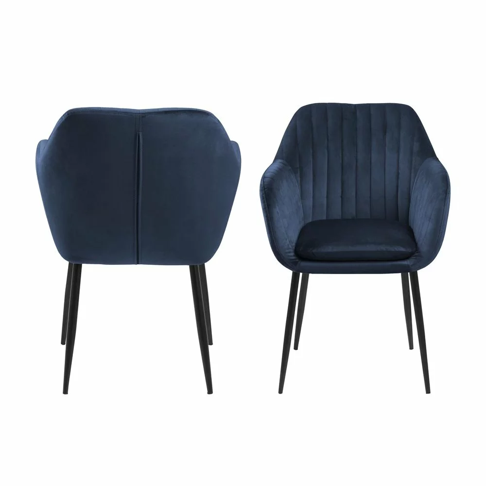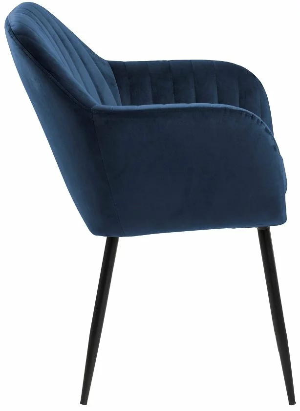 Nojatuoli klassisella profiililla. Verhoiltu tummansinisellä samettikankaalla ja jalat mustaa jauhelakattua metallia. Tuoli on osa meidän Oceanbay-sarjaamme.