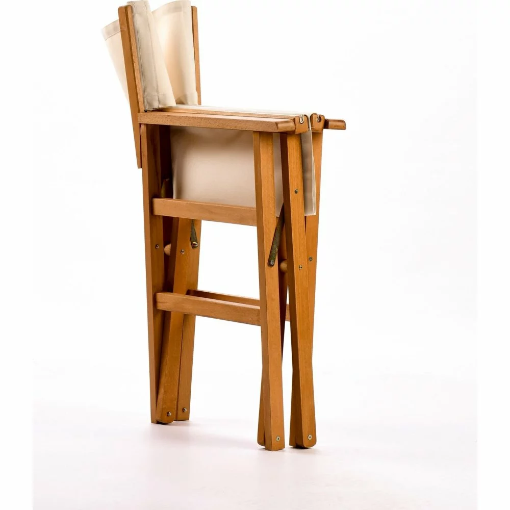Pyökkipuusta valmistettu taitettava tuoli polyesteriverhoilulla.