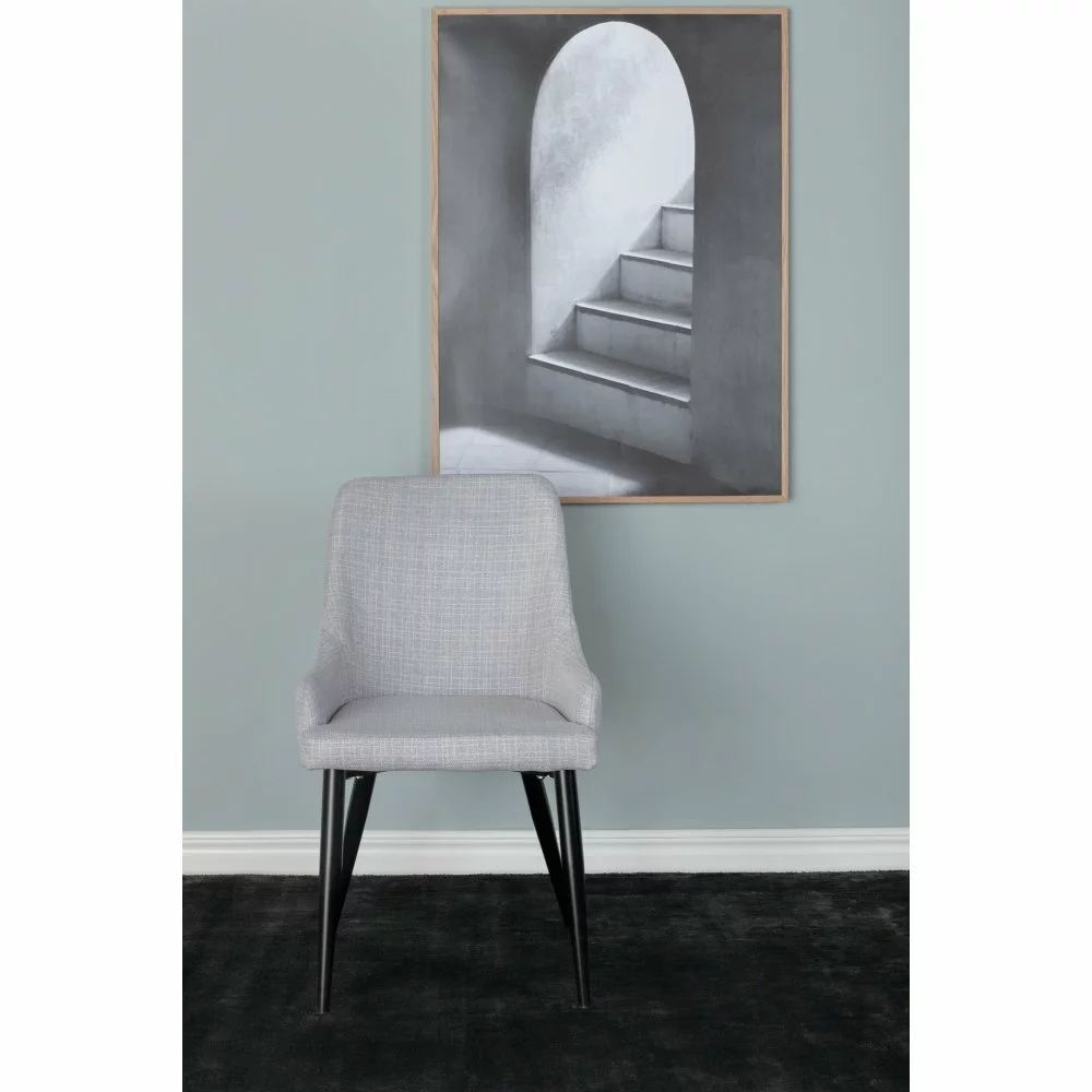 Ruokapöydän tuoli valmistettu metallista ja puusta, päällystetty polyesterikankaalla.