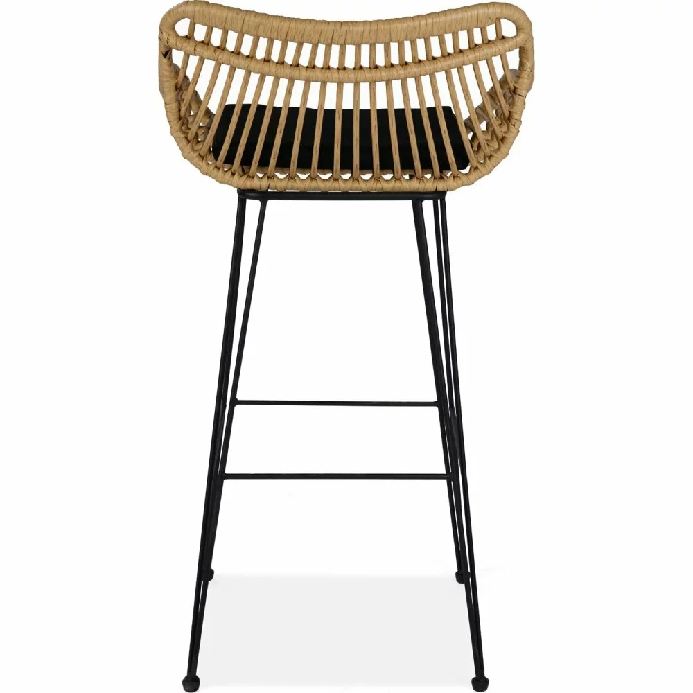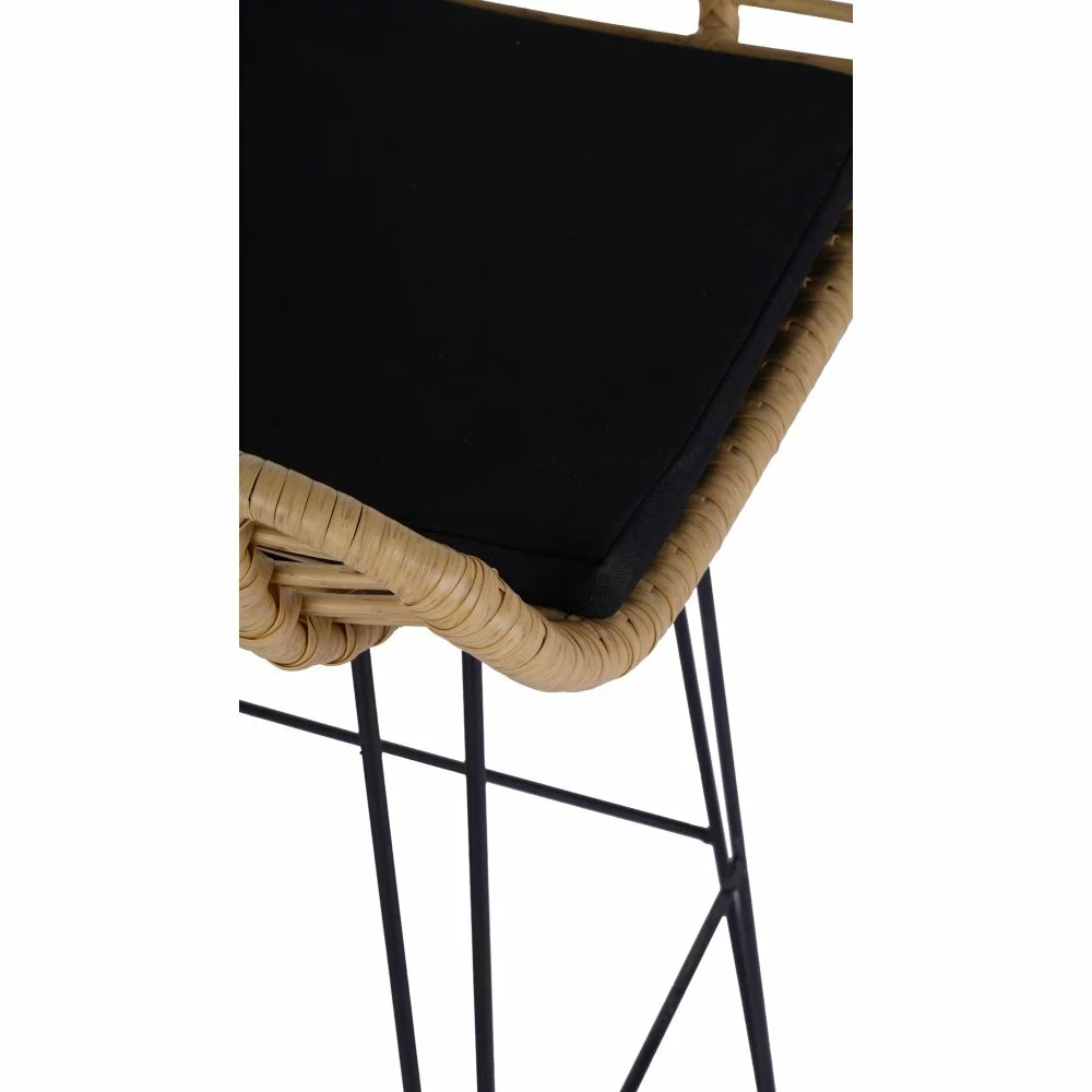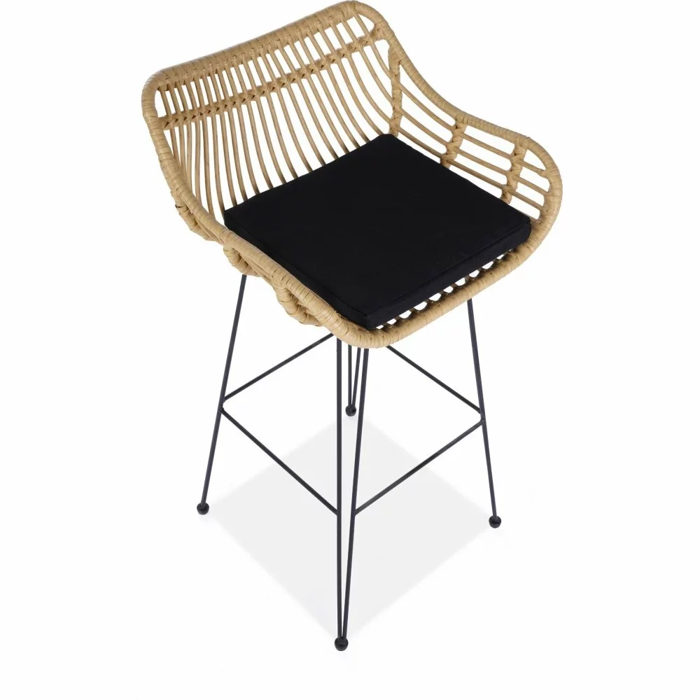 Teräksinen ja synteettinen rottinki baarijakkara kangasverhoilulla.