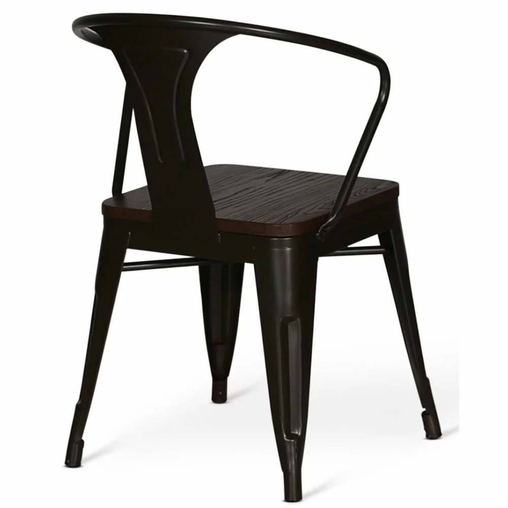 Hieno ruokatuoli retrolla muotoilulla. Runko on valmistettu metallista ja istuin on puuta saksanpähkinätoteutuksella.