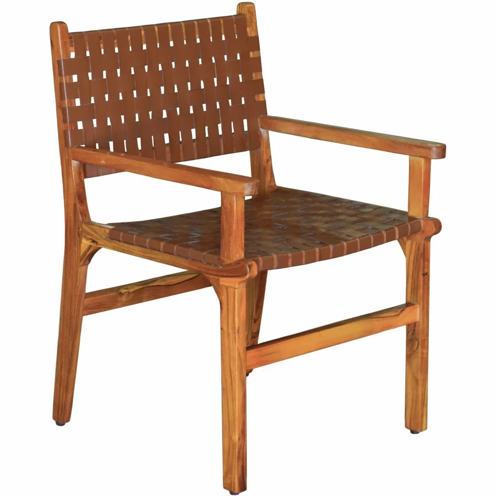Porto Bello nojatuoli massiiviakasiaa, tiikkiviimeistely. Istuin ja selkänoja satula konjakinruskeasta aniliininahasta. Tuoli kuuluu suosittuun sarjaamme Porto Bello.