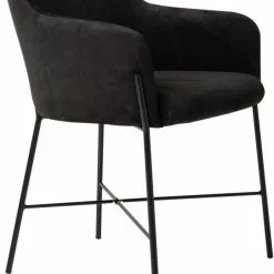 Nojatuoli mustaa samettia, verhoiltu sekä istuimessa että selkänojassa. Pohja mustaksi lakattua metallia.