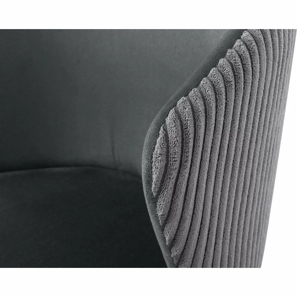Puusta valmistettu nojatuoli kangasverhoilulla.