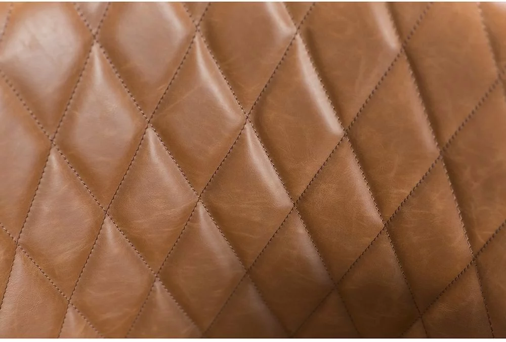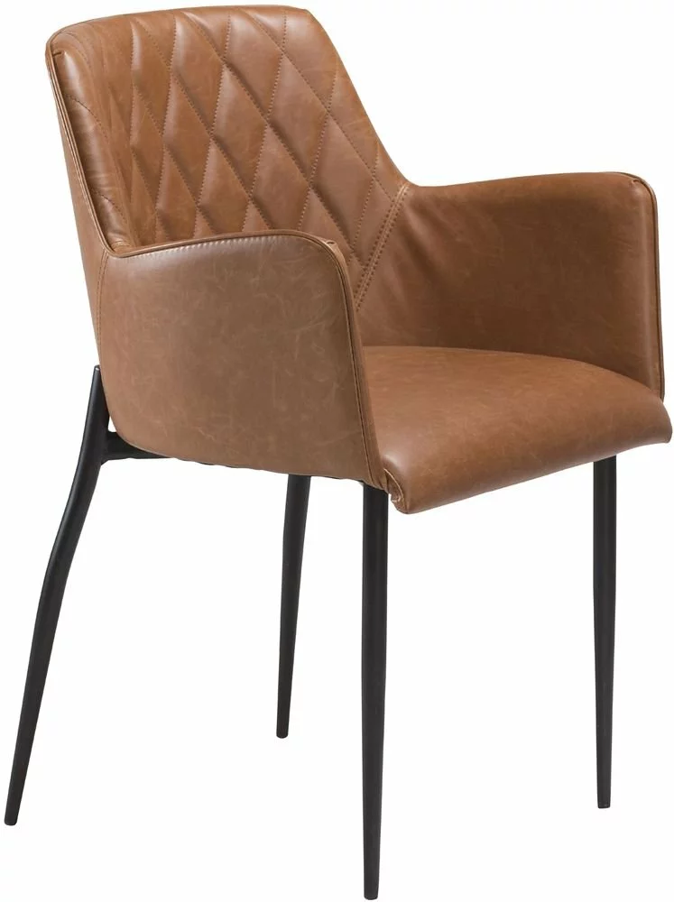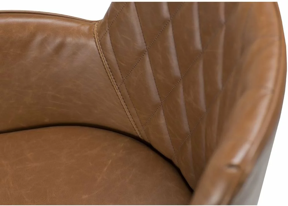 Tuoli Skånska Möbelhusetiltä. Tuolissa on vaaleanruskea keinonahkaverhoilu ja mustat jalat.