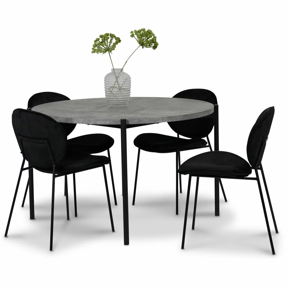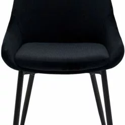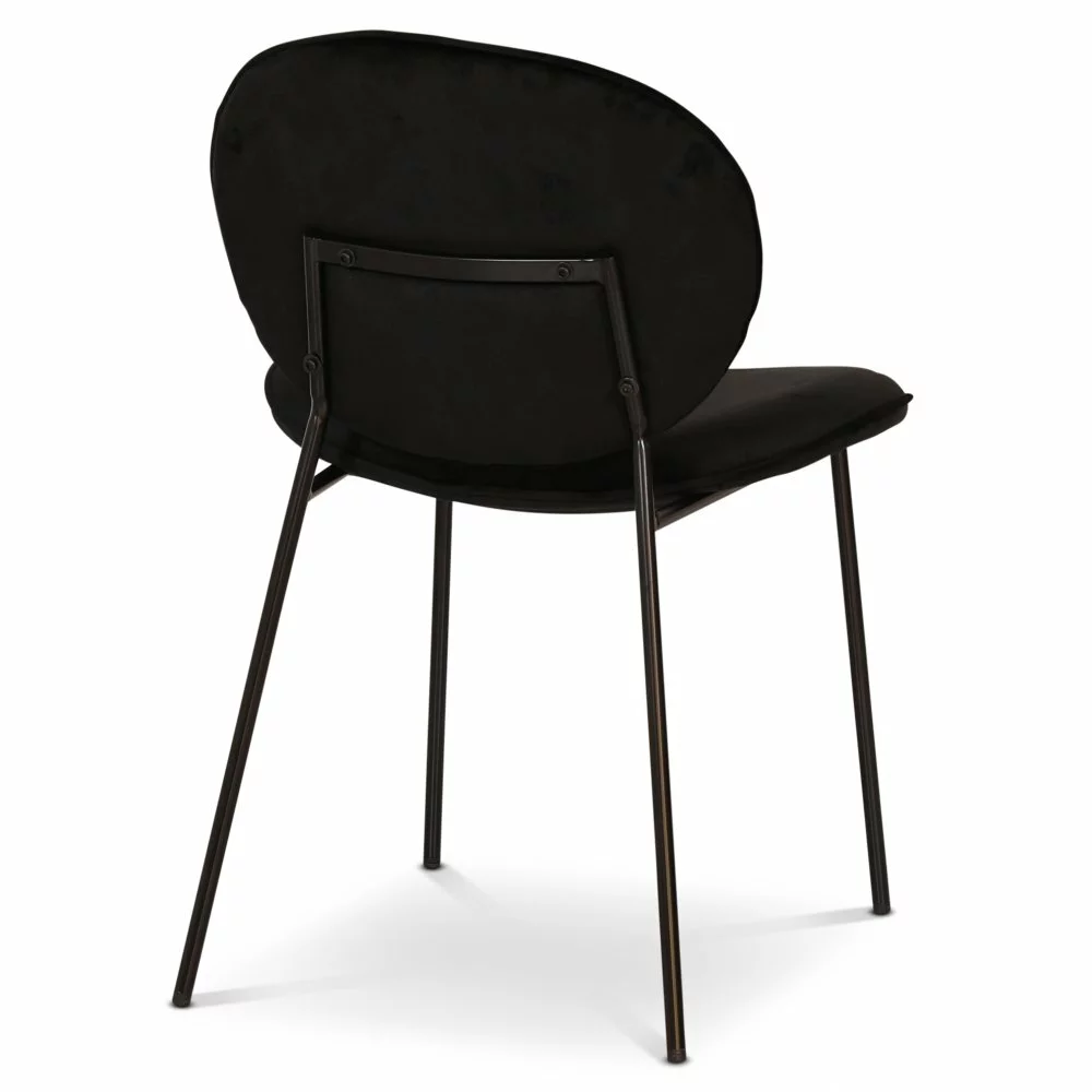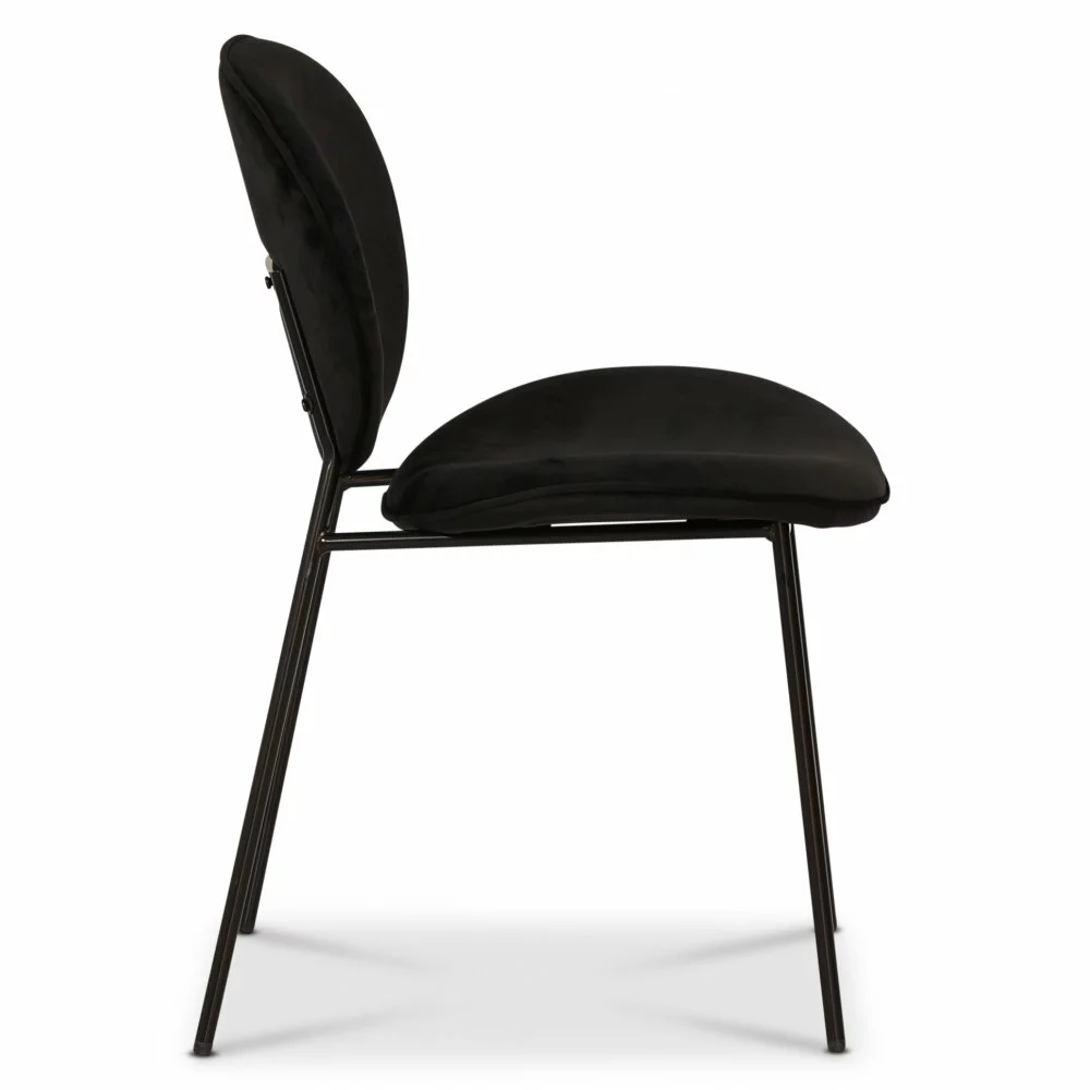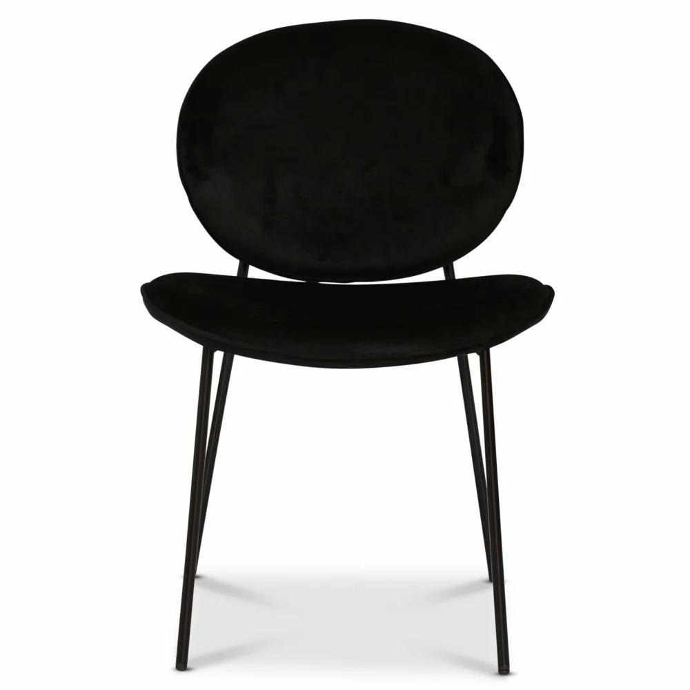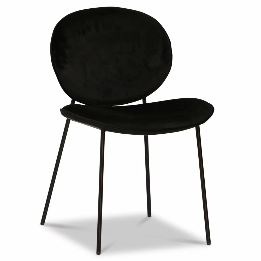 Moderni tuoli päällystetty mustalla samettikankaalla, mustat metallijalat. Sarjaan kuuluu tuoleja useissa väriyhdistelmissä.