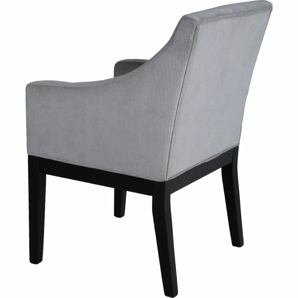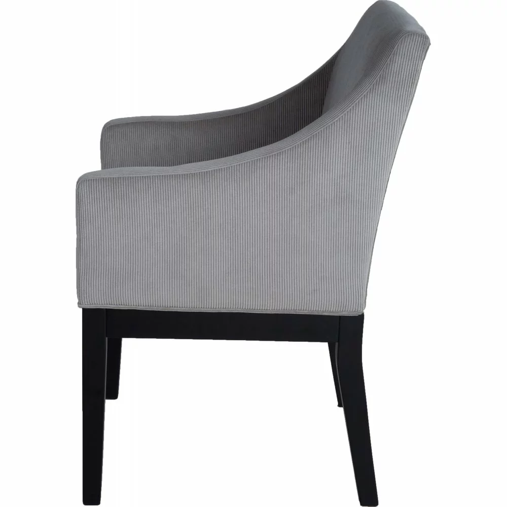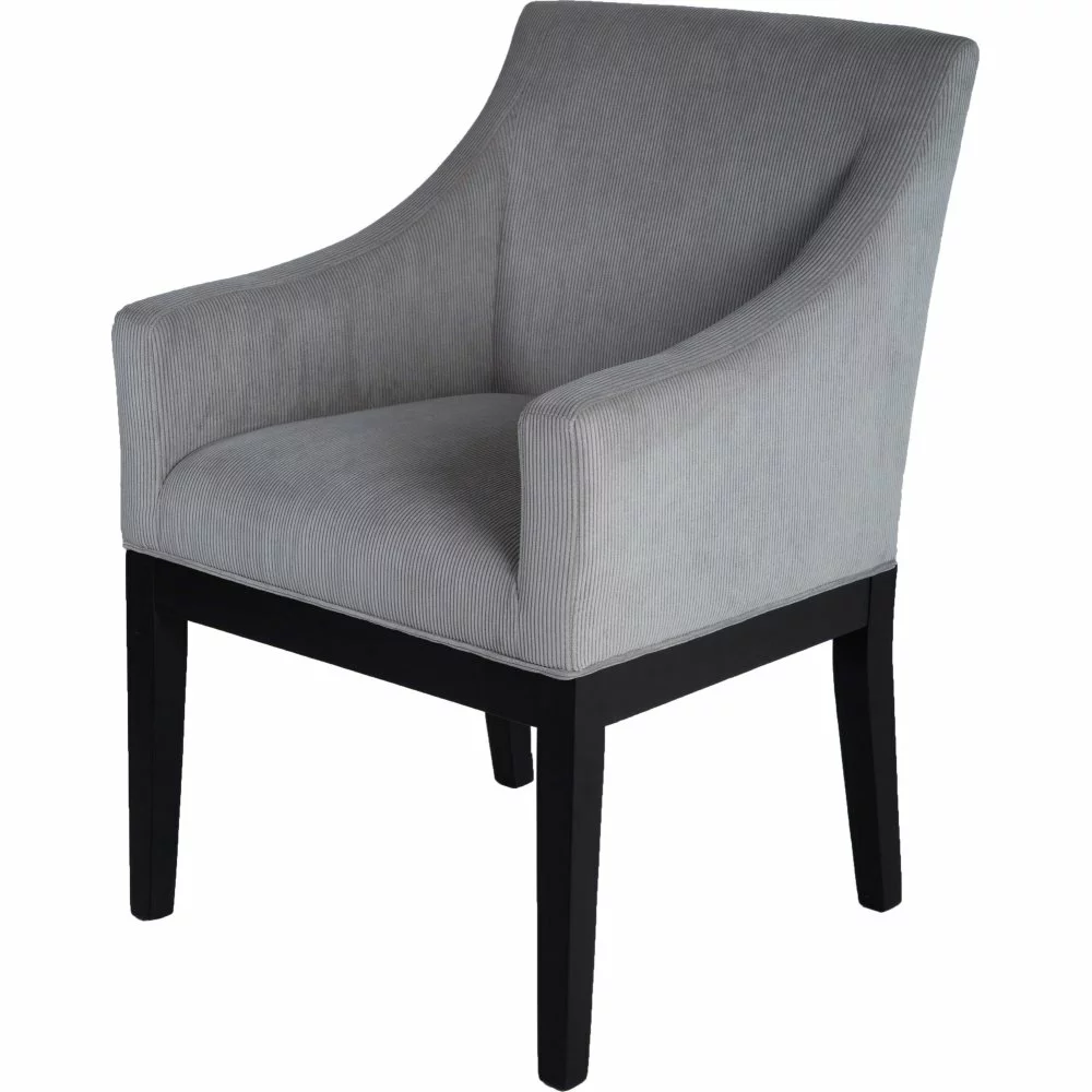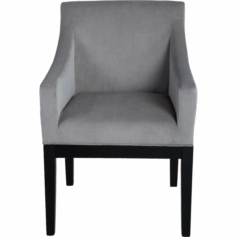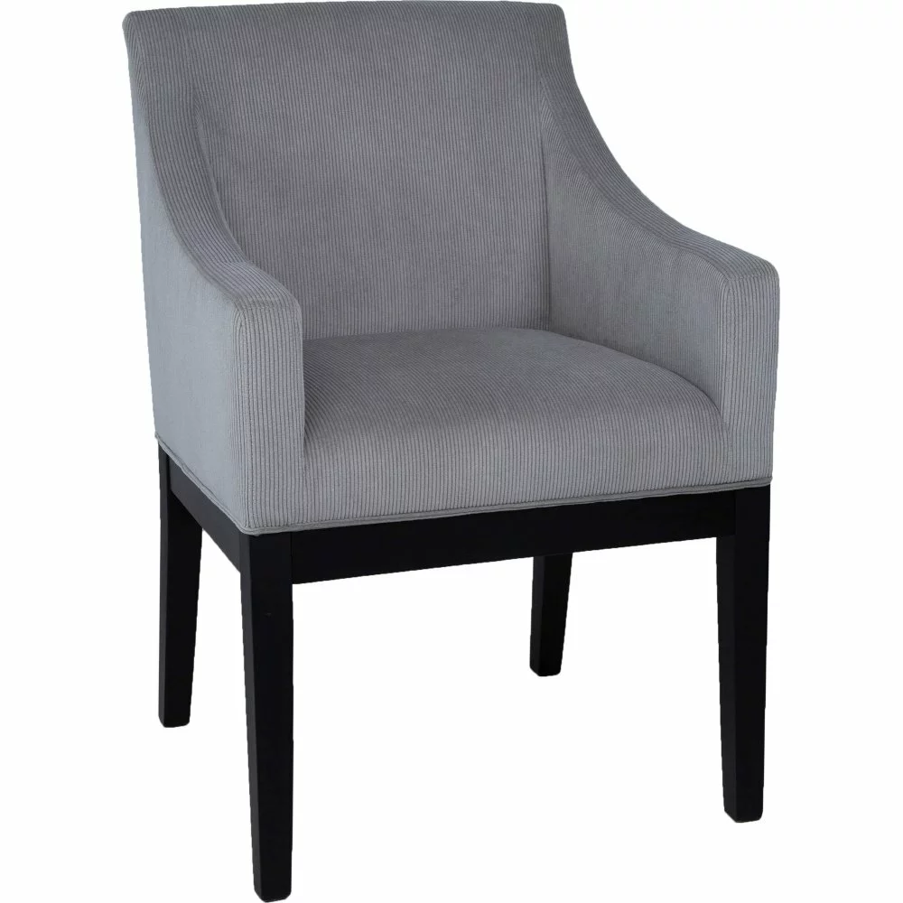 Kumipuusta valmistettu nojatuoli. Verhoilu kankaasta. Pysäytysvaahto.