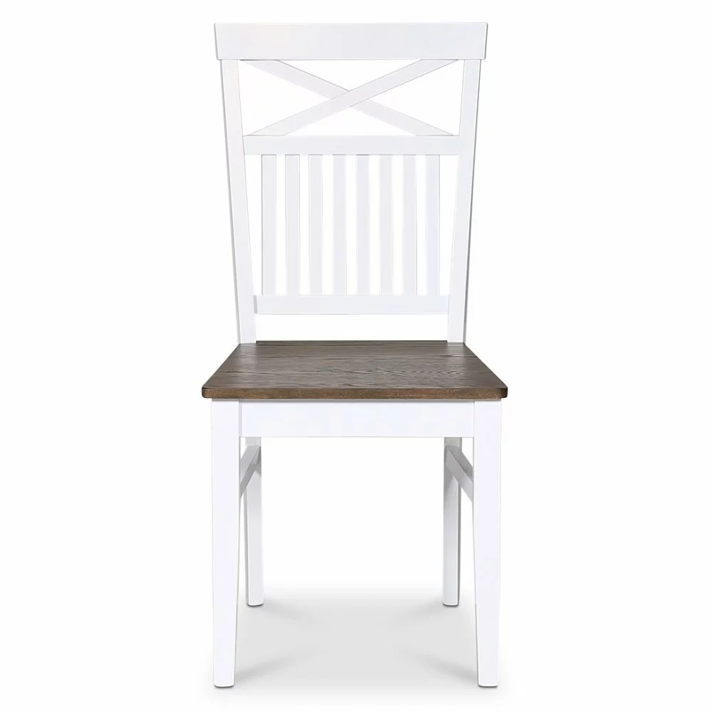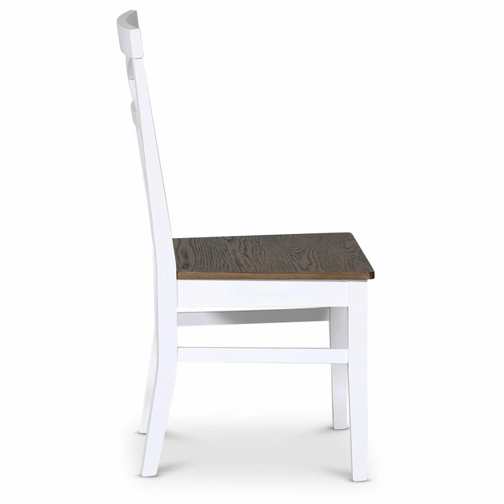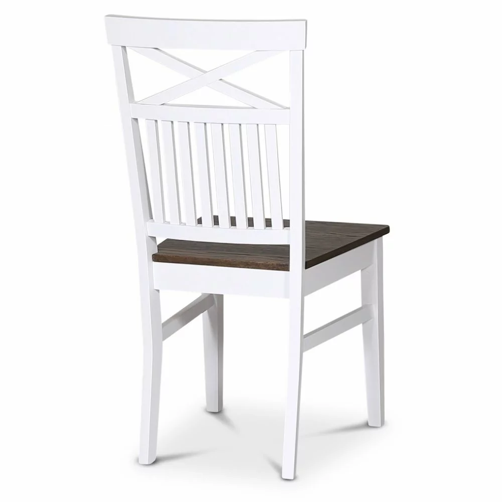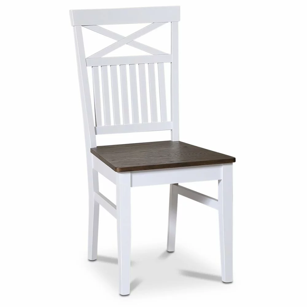 Ruokasalisarjamme Fårö, Skagen ja Dalarö on suunniteltu klassiseen designiin, jossa tyylikäs muotoilu kohtaa laadun. Tämä ruokatuoli, jonka runko on valkoiseksi lakattua massiivipuuta ja istuin mattapintaista eksklusiivista ruskeaa öljyttyä tammiviilua. Risti ja suorat resorit selässä klassinen yksityiskohta.