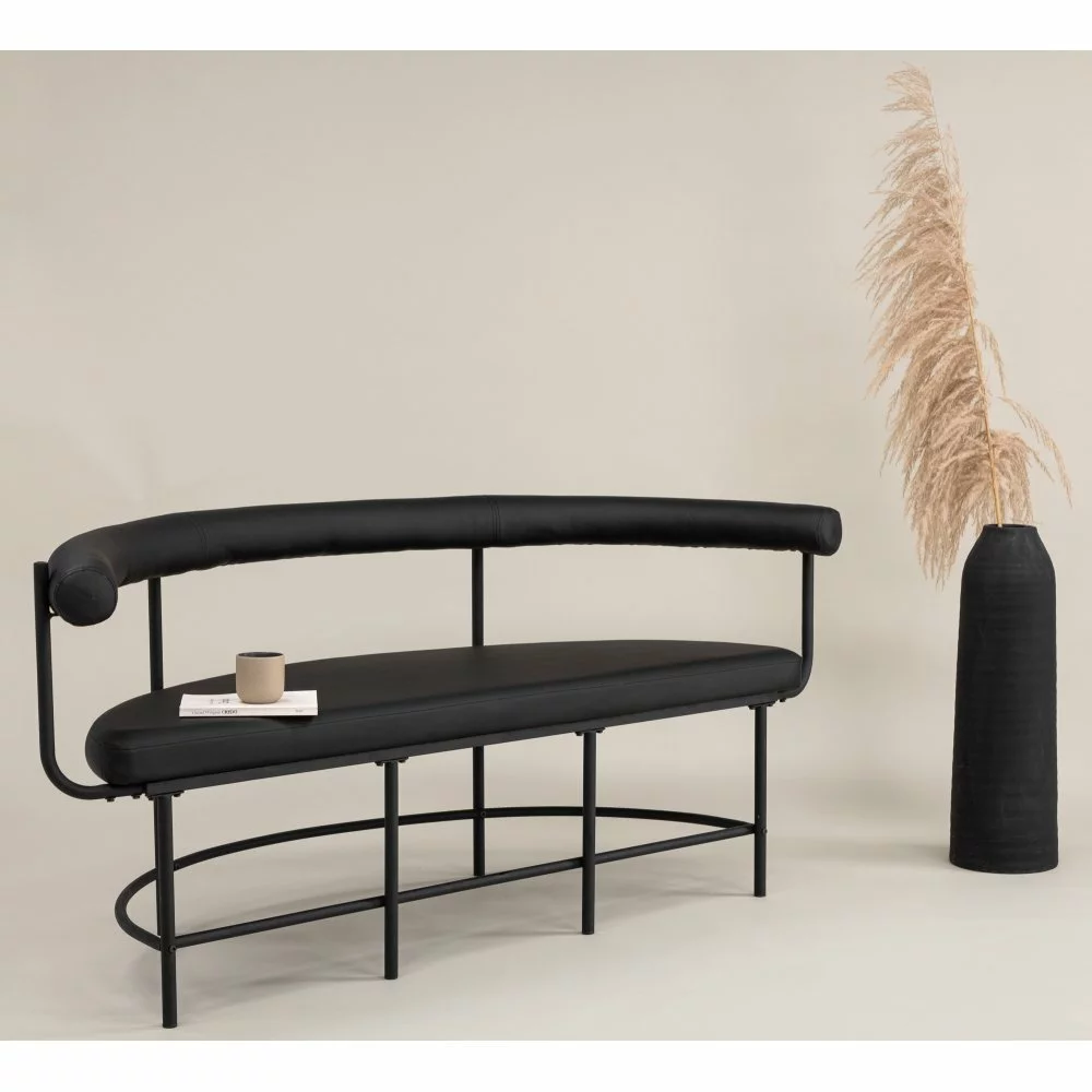 Nosta kotisi tyylin tasoa tällä herkullisella penkillä Josefin Lustigin mallistosta. Penkki on ylellinen ja hyvin harkittu muotoilu moderneilla muodoilla ja skandinaavisella muotoilulla. Kuunsirpin muotoinen selkänoja on hieman pyöristetty ja istuin mukava PU-verhoilu. Runkorakenne on minimalistinen musta teräs. Sijoita eteiseen tai olohuoneeseen luodaksesi huoneeseen moderni tunnelma.