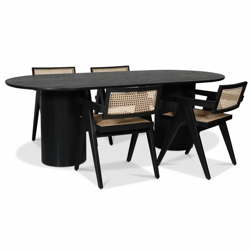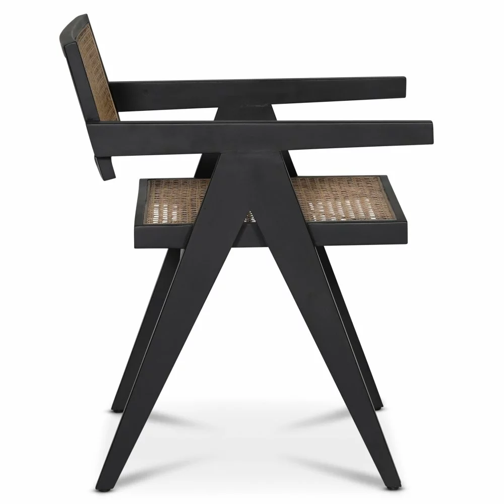 Nojatuoli, jossa runko eksklusiivinen mahonki musta, selkänoja ja istuin luonnollisen väristä rottinki.