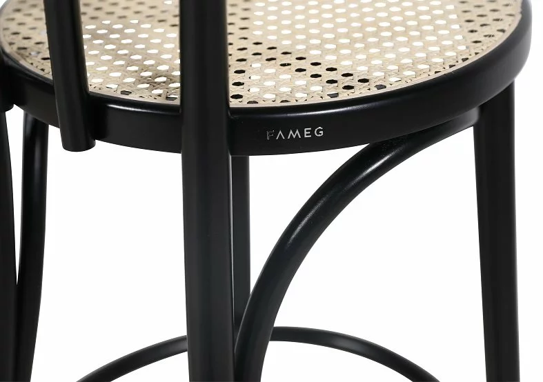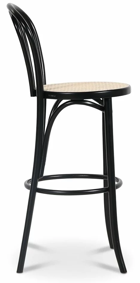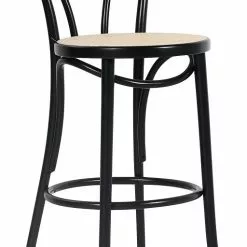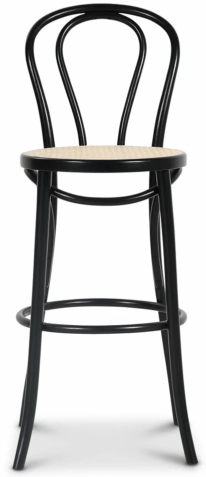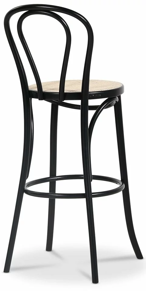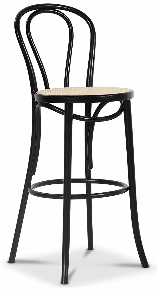 Yksi klassisimmista baarituolista taivutetusta puusta. Michael Thonetin suunnittelema yli 150 vuotta sitten. Tuolin istuin luonnonrottinkia ja runko mustaksi lakattua taivutettua puuta.